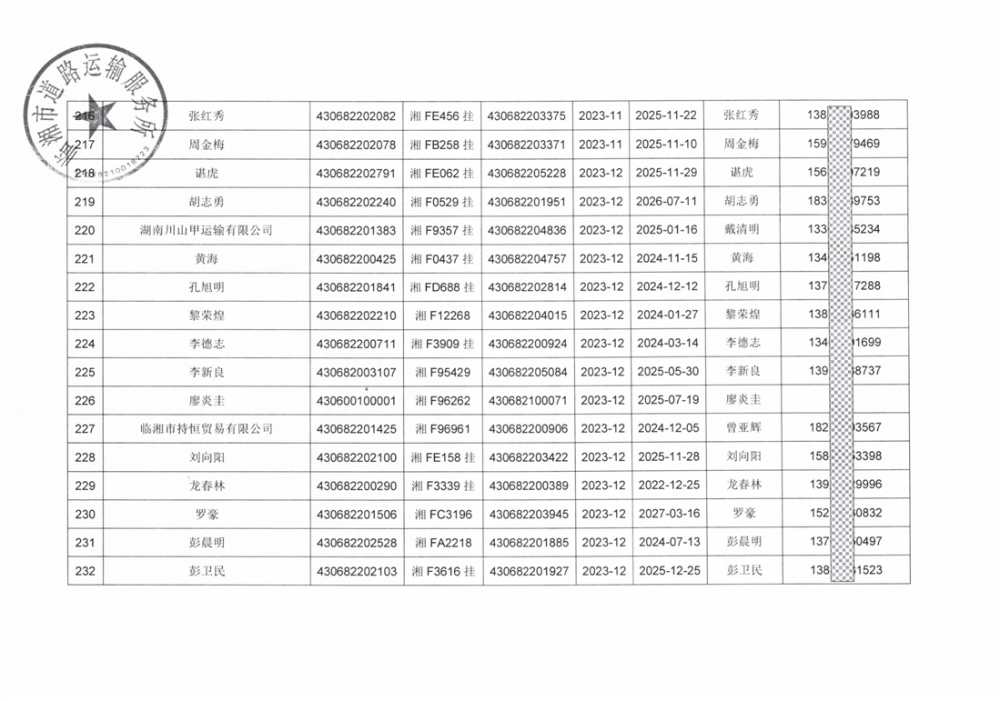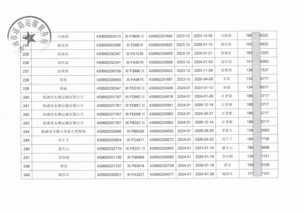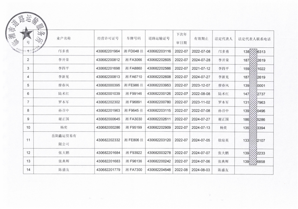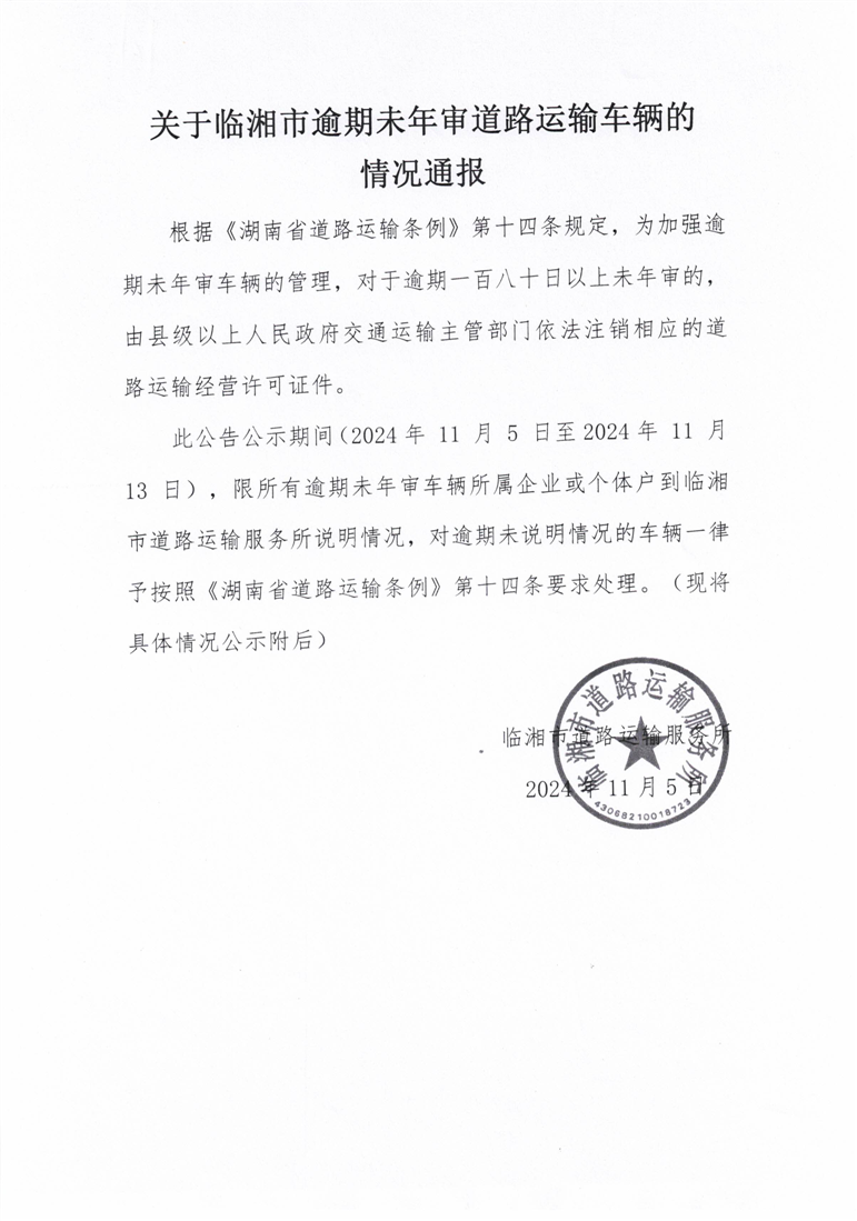 关于临湘市逾期未年审道路运输车辆的情况通报(2)