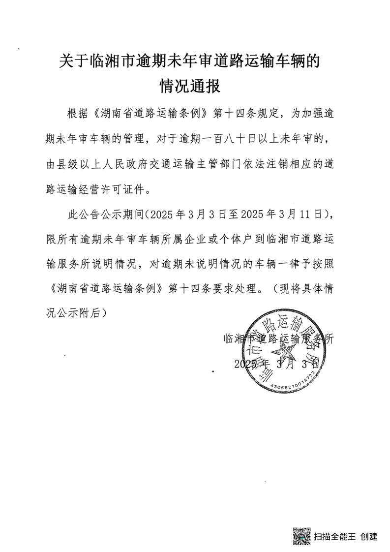 关于临湘市逾期未年审道路运输车辆的情况通报(2025)