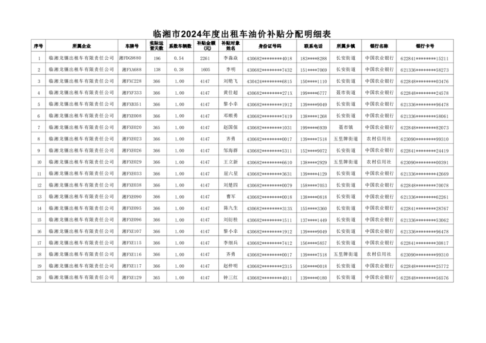 关于2024年度农村客运补贴和城市交通发展奖励资金发放明细的公示