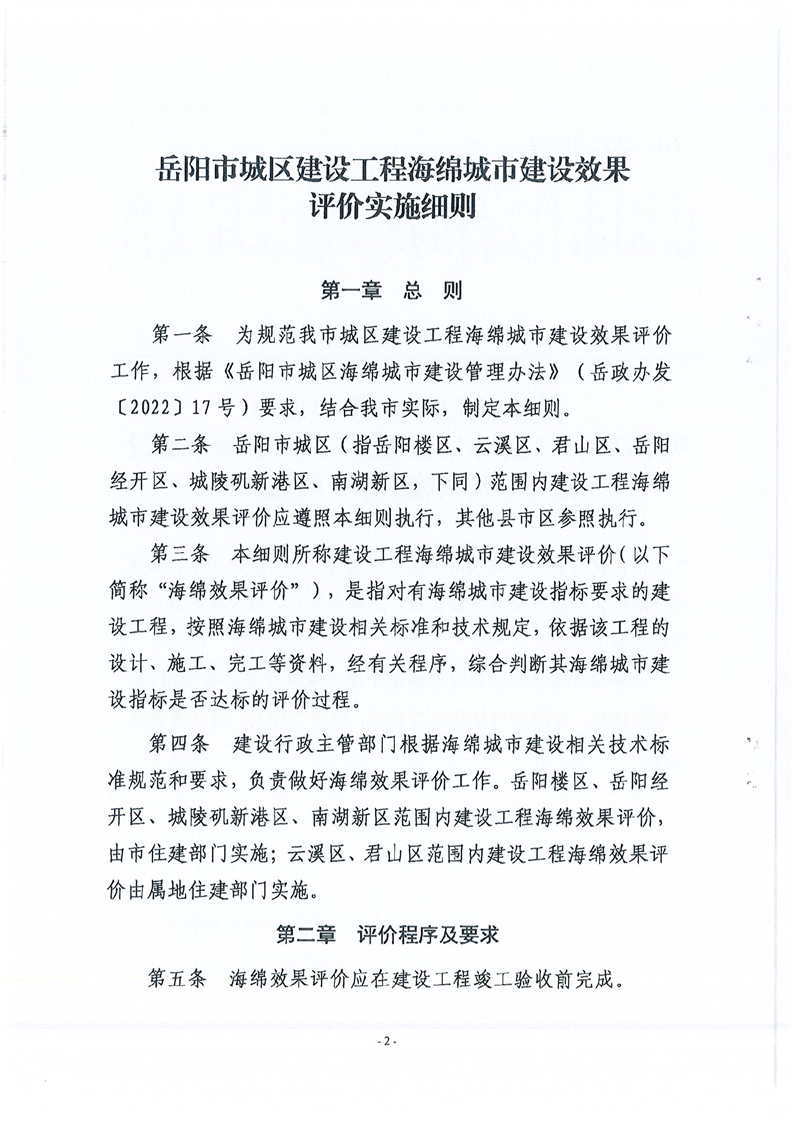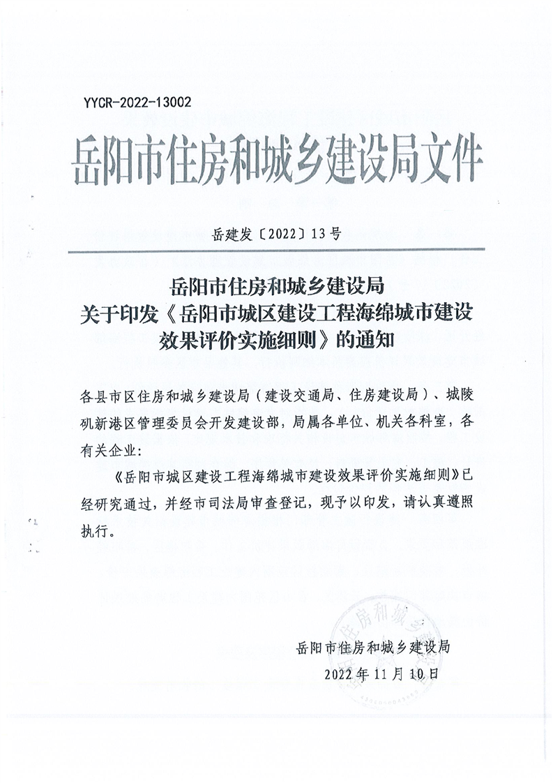 岳阳市住房和城乡建设局关于印发《岳阳市城区建设工程海绵城市建设效果评价实施细则》的通知