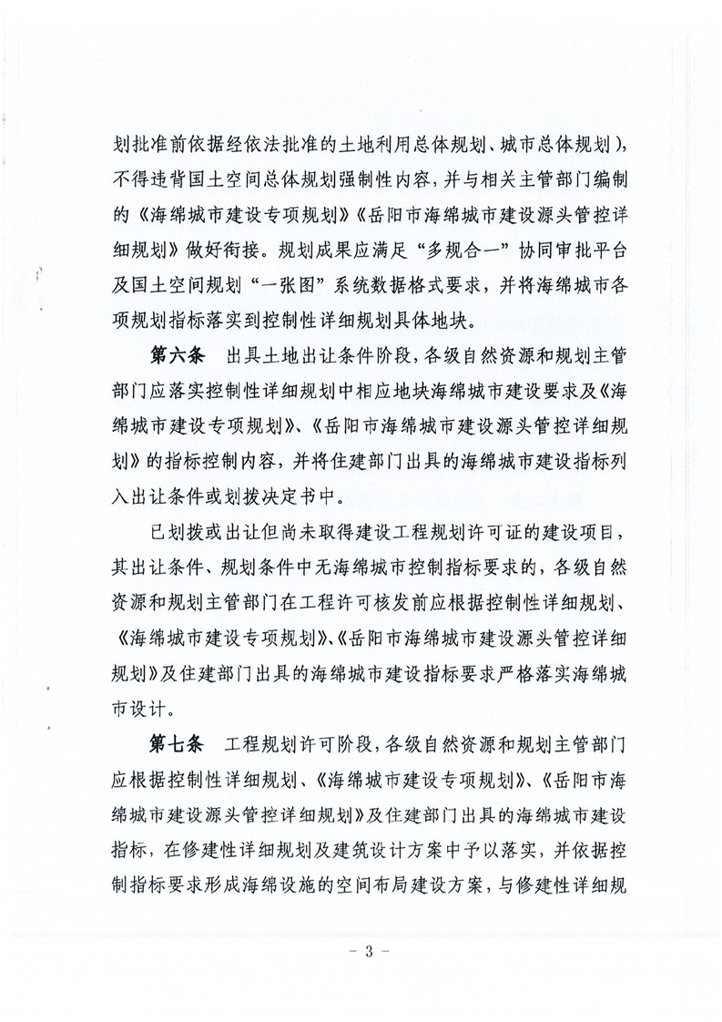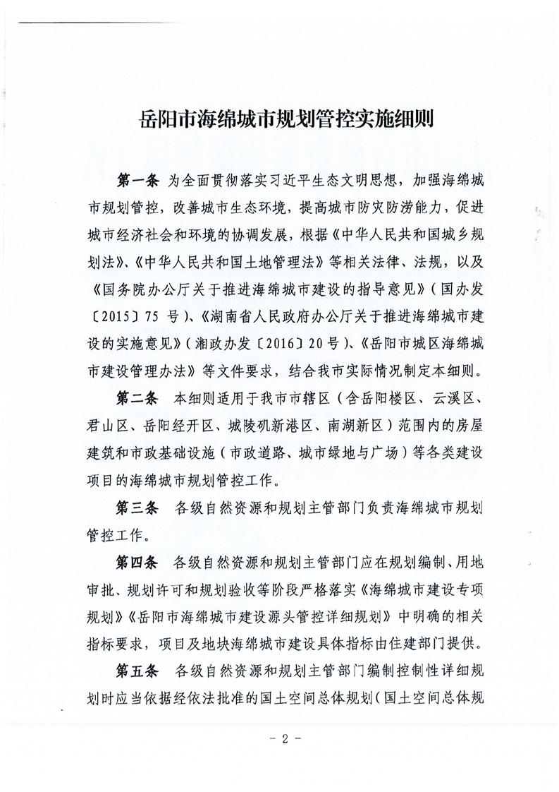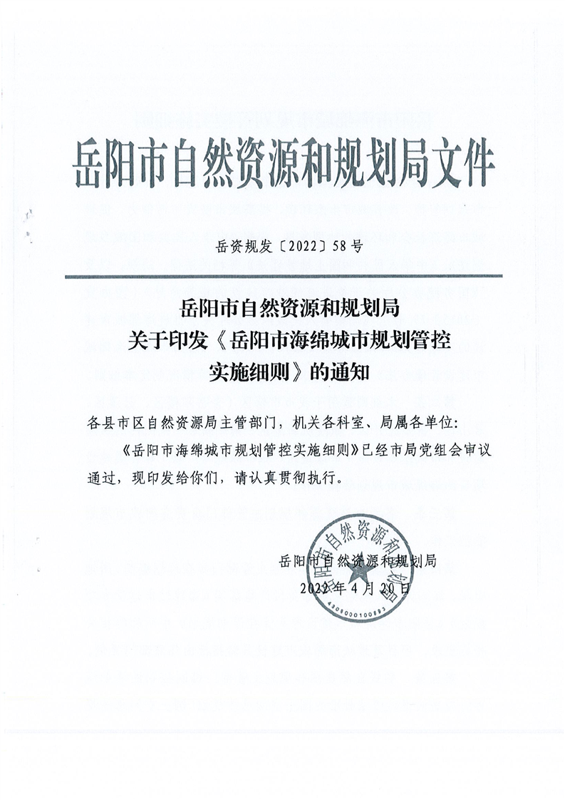 岳阳市自然资源和规划局关于印发《岳阳市海绵城市规划管控实施细则》的通知