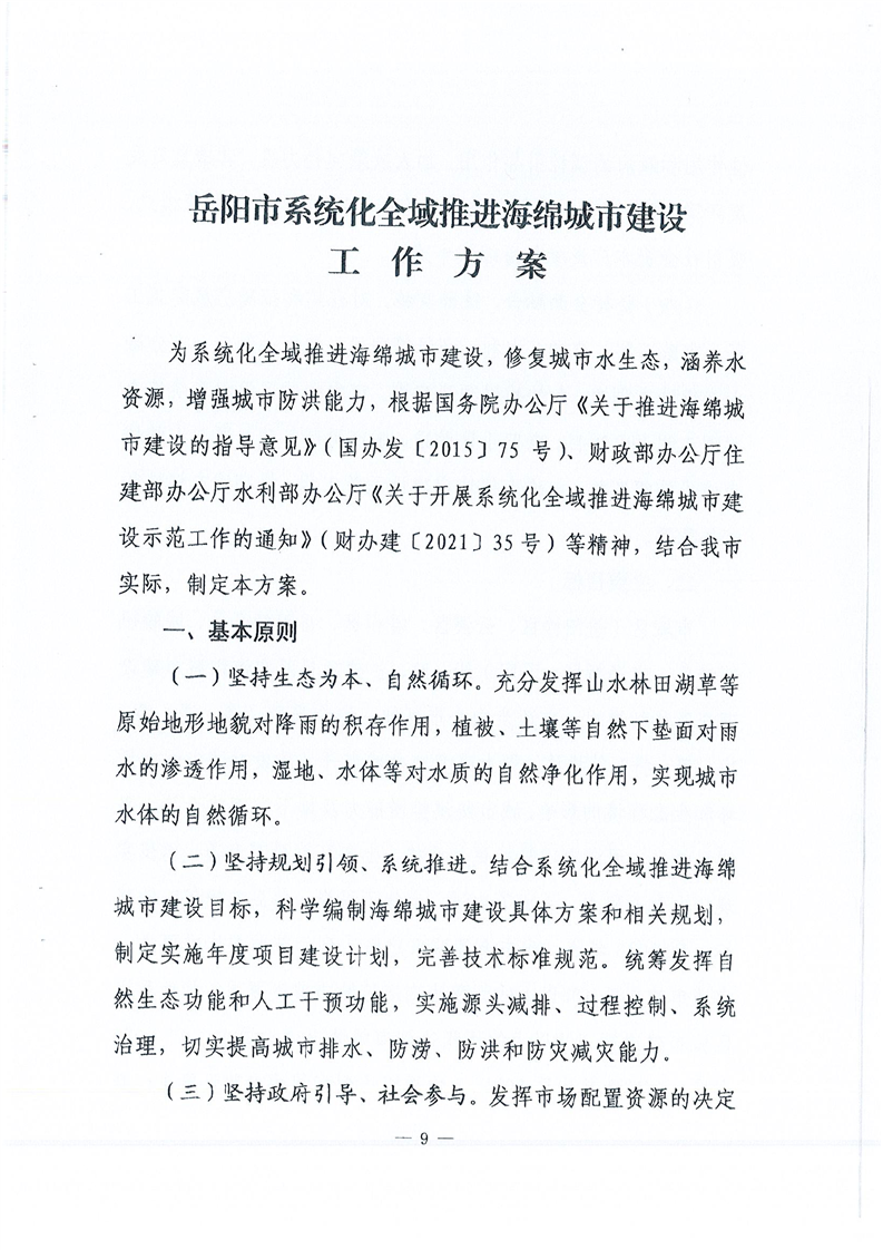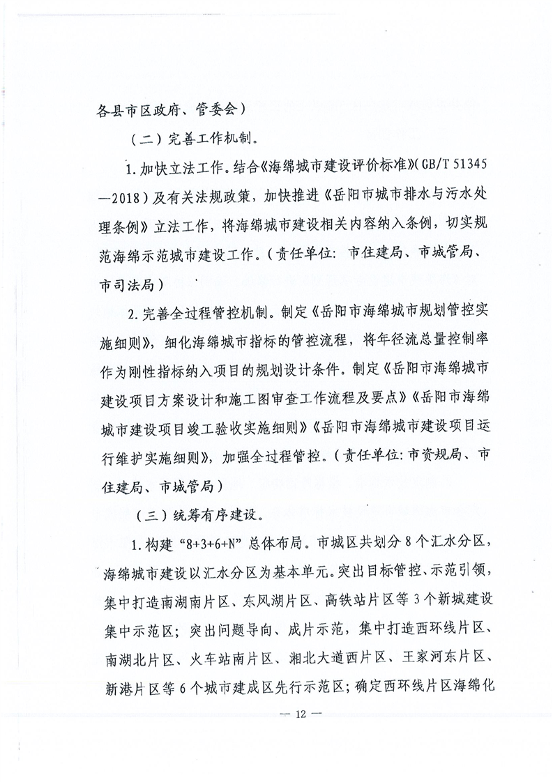 岳阳市人民政府办公室关于印发《岳阳市城区海绵城市建设管理办法》和《岳阳市系统化全域推进海绵城市建设工作方案》的通知