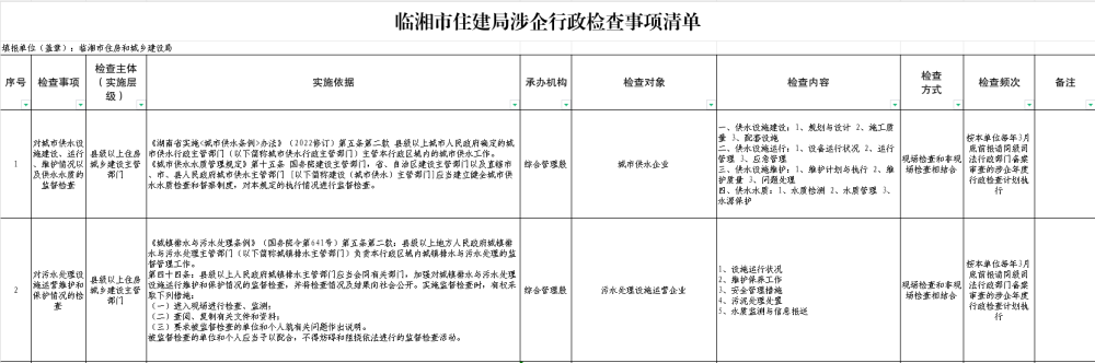 临湘市住建局涉企行政检查事项清单