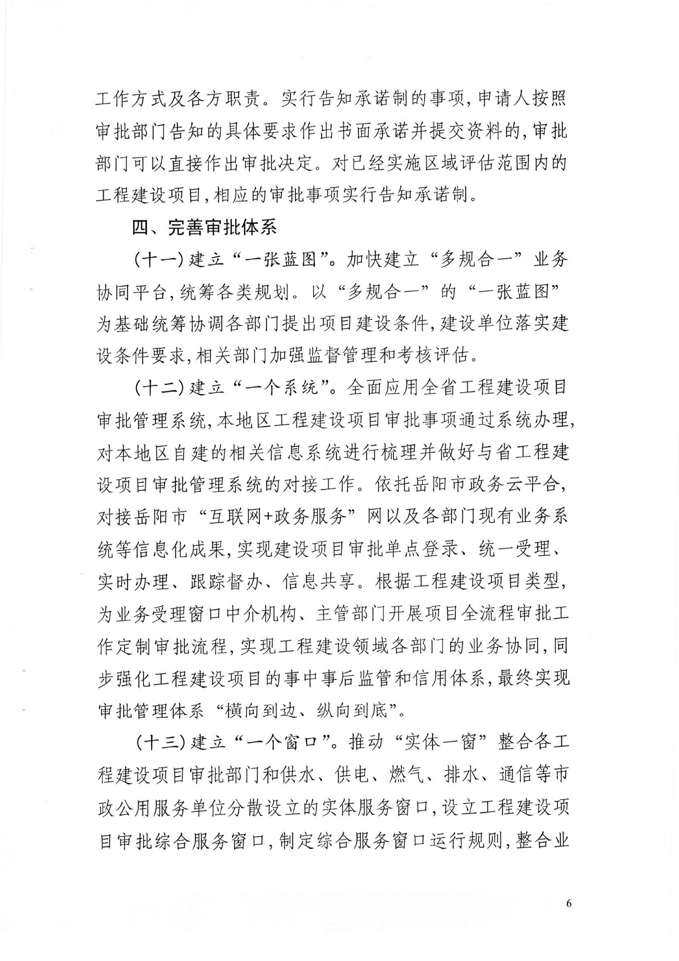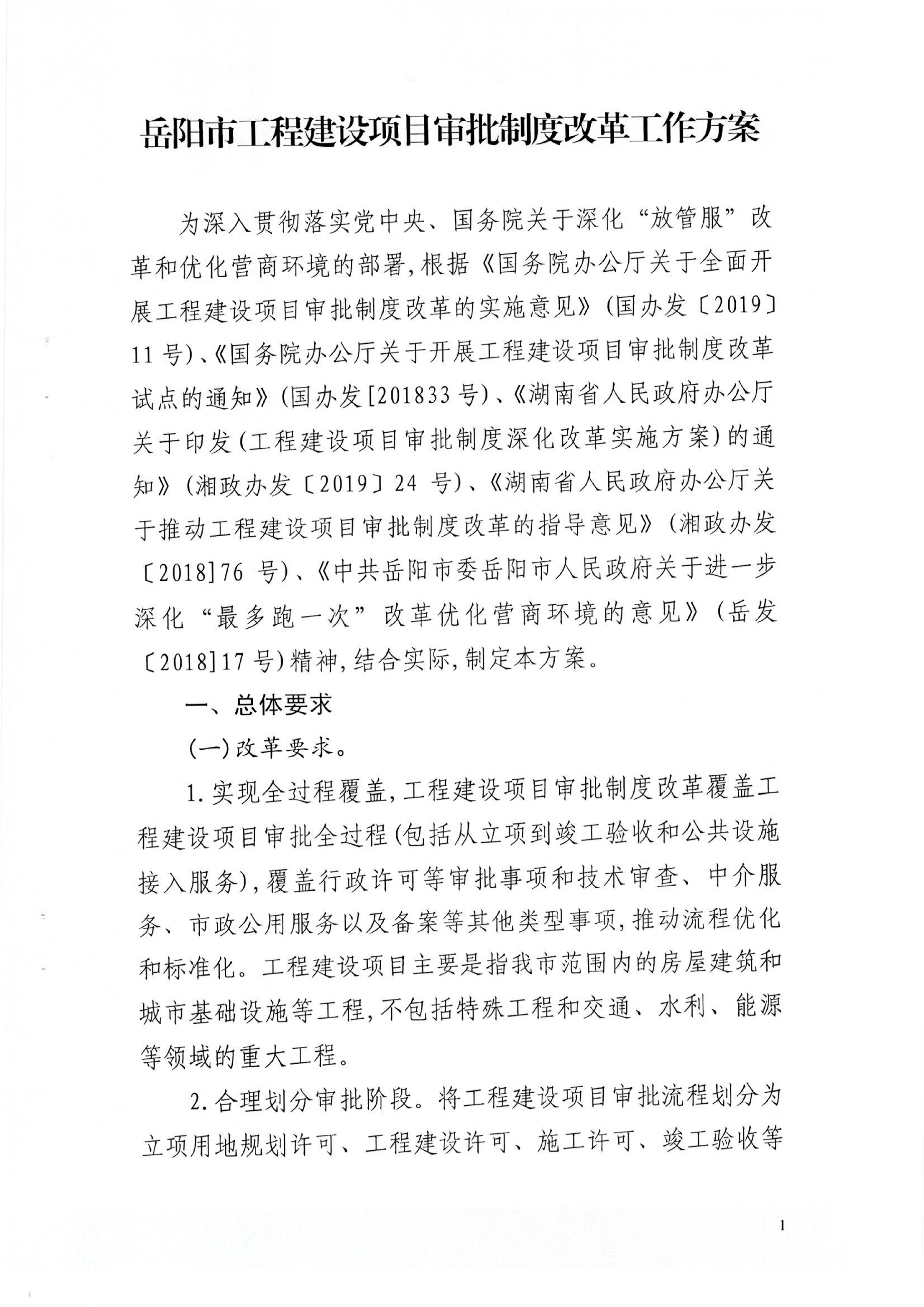 关于转发《岳阳市工程建设项目审批制度改革工作方案》的通知