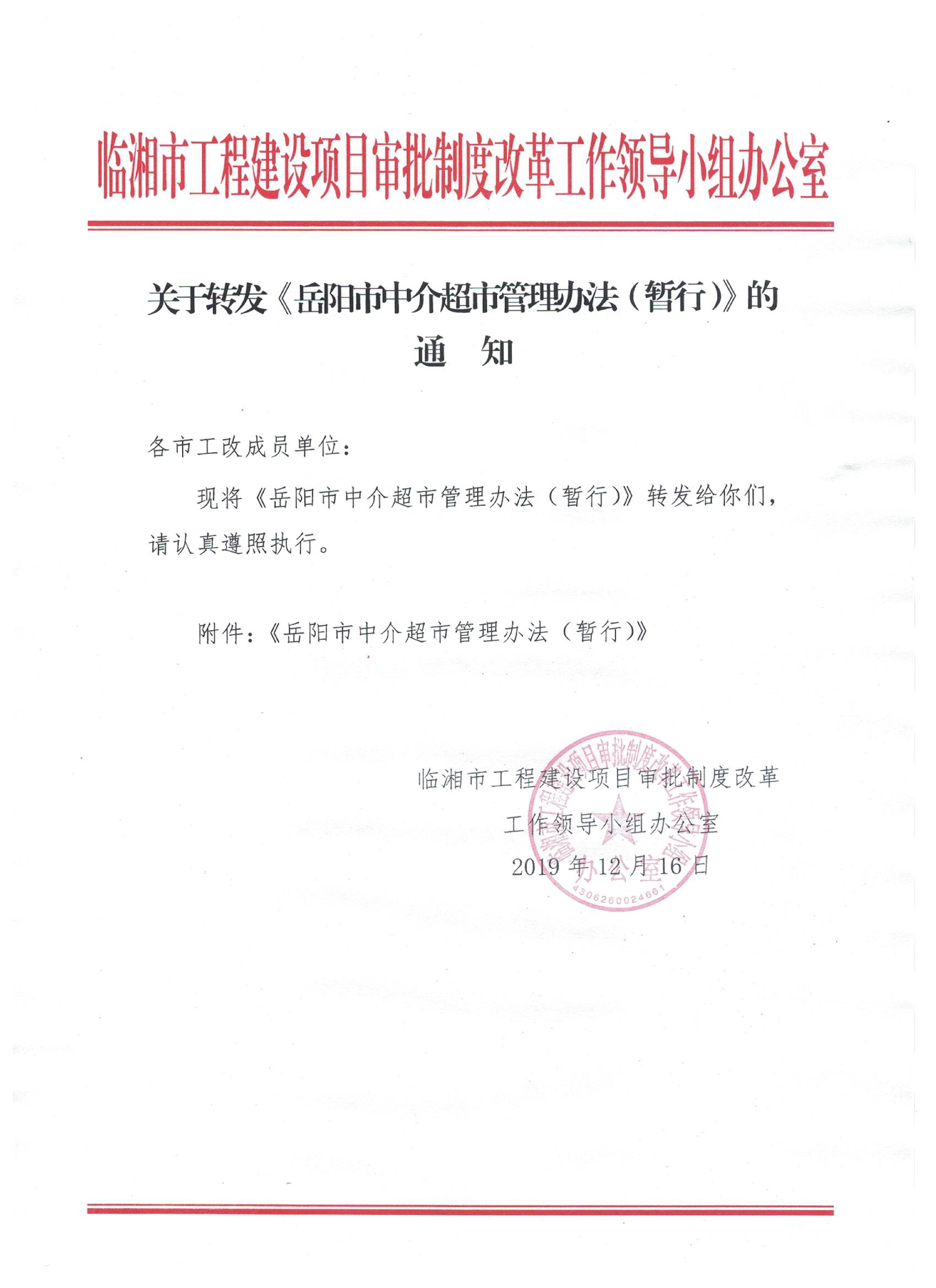 关于转发《岳阳市中介超市管理办法(暂行)》的通知