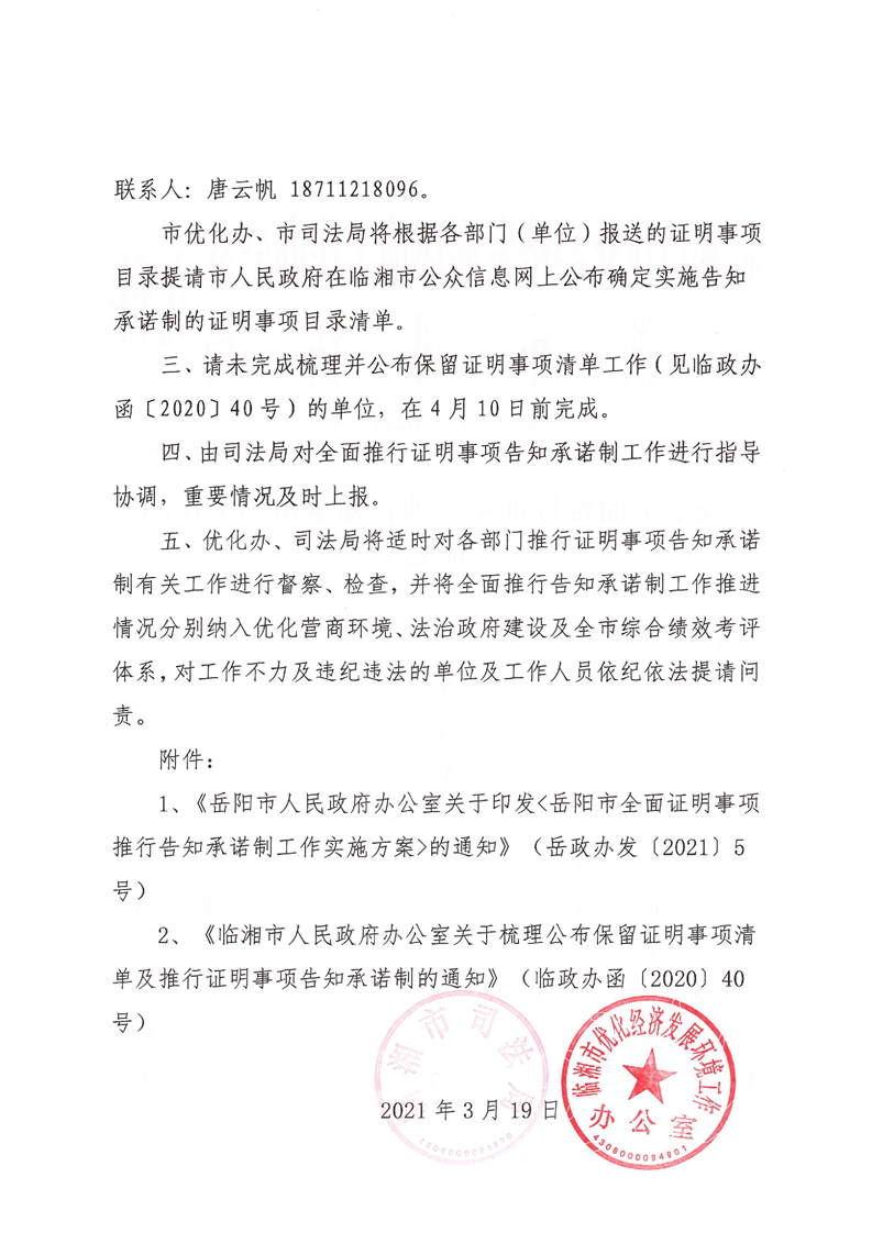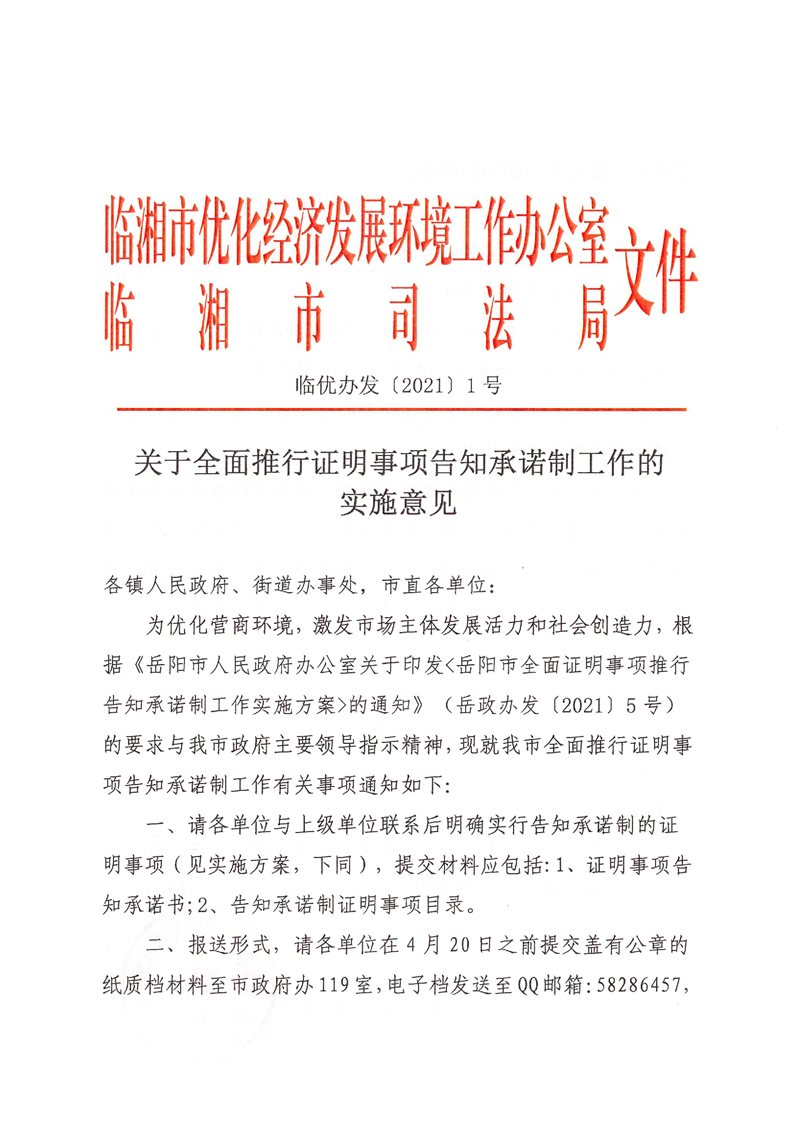临优办发【2021】1号关于全面推行证明事项告知承诺制工作的实施意见