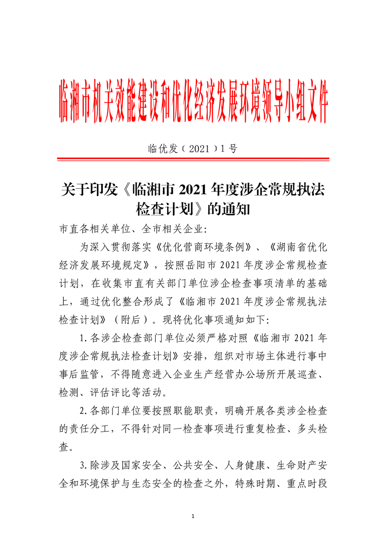 临优发【2021】1号 临湘市机关效能建设和优化经济发展环境领导小组