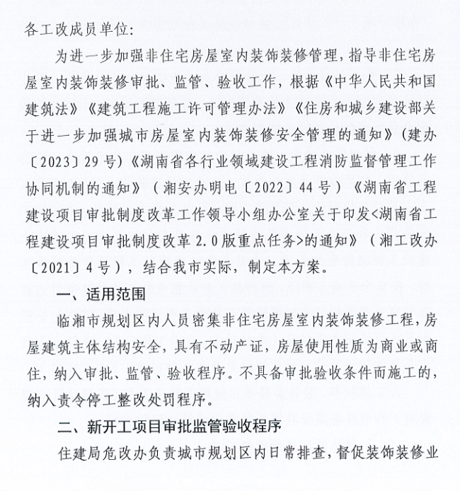 临湘市非住宅房屋室内装饰装修工程审批监管验收工作流程(试行)