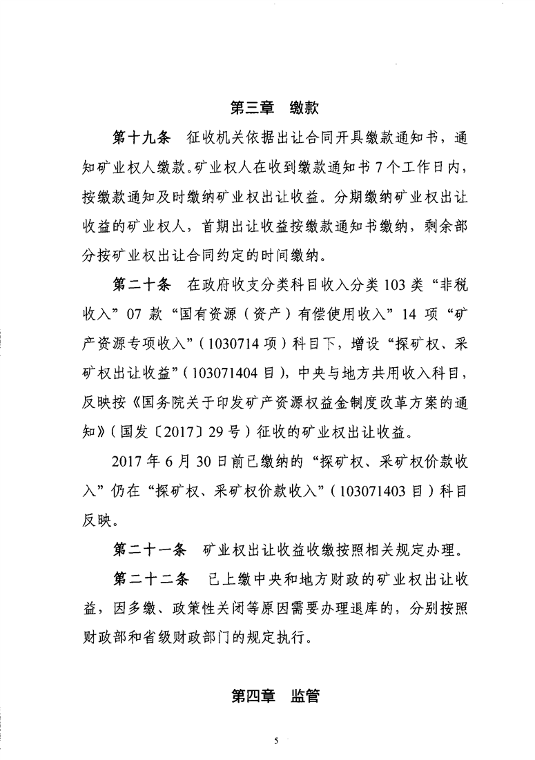 财政部 自然资源部关于印发《矿业权出让收益征收管理暂行办法》的通知