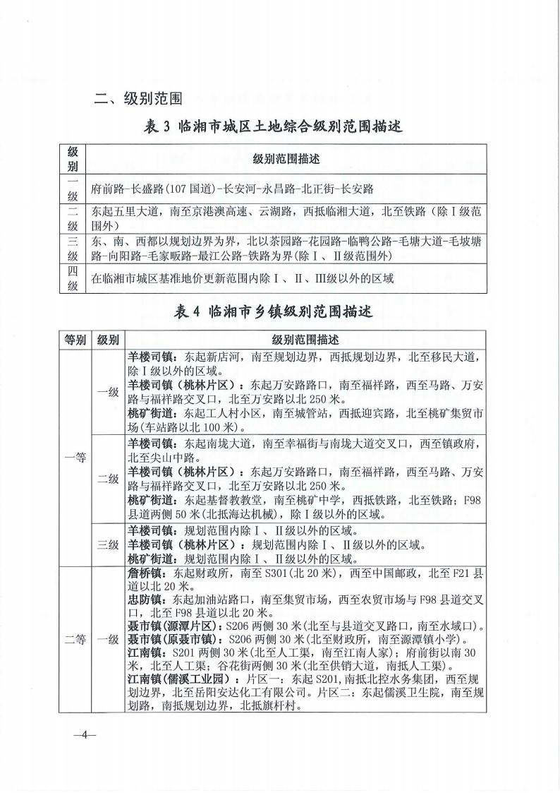 临湘市人民政府关于公布实施临湘市公示地价体系建设成果的公告