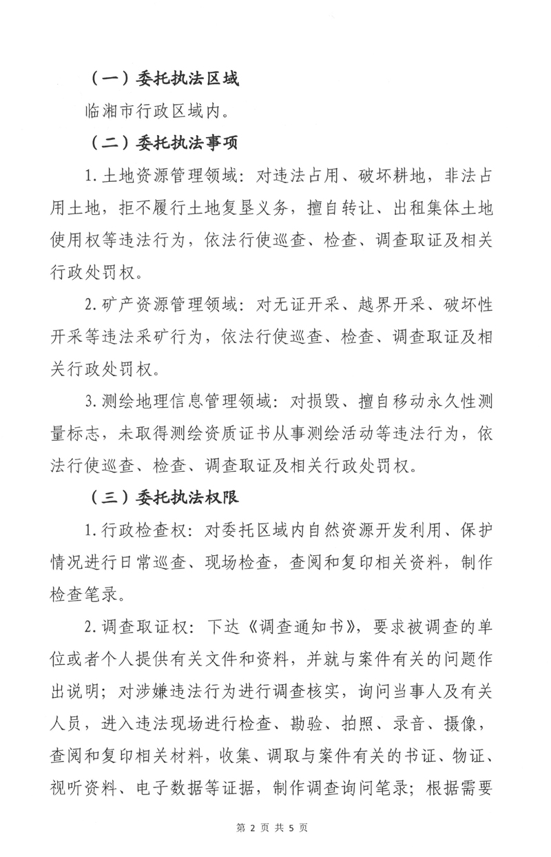 自然资源行政执法委托书(临湘市自然资源局委托临湘市自然资源管理中心)