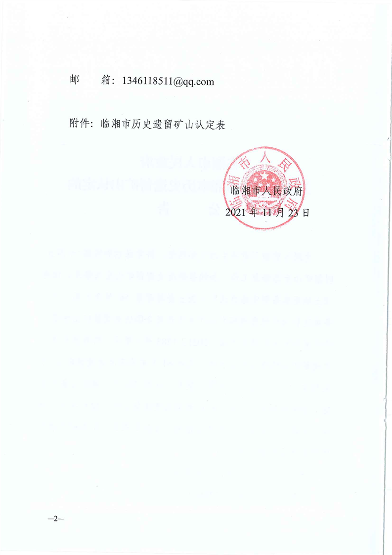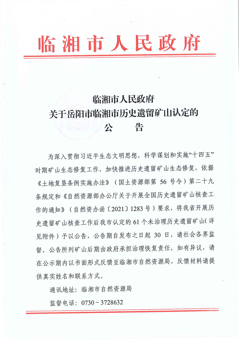 关于岳阳市临湘市历史遗留矿山认定的公告