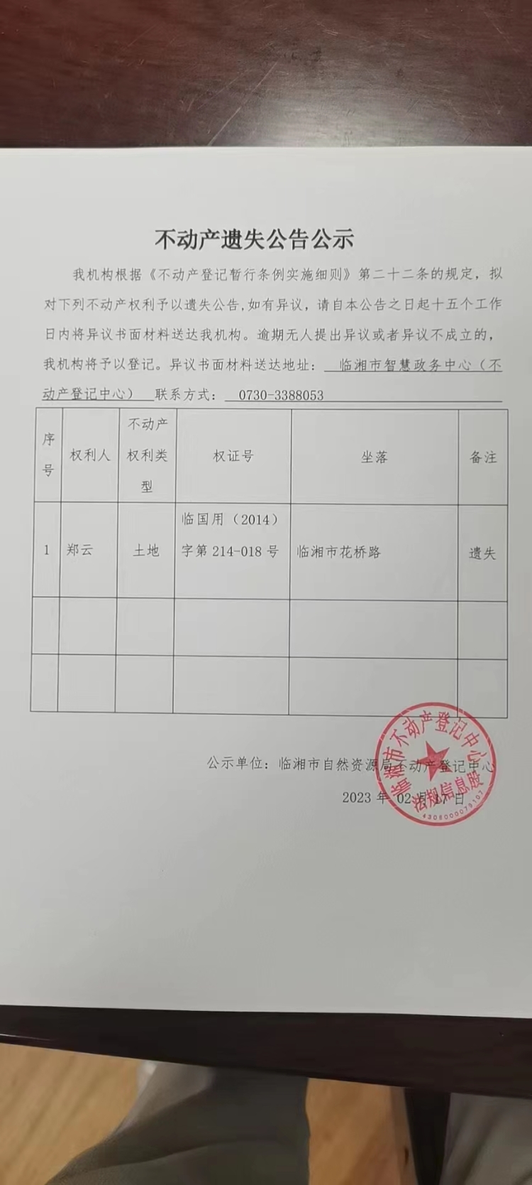 郑云不动产遗失公告公示