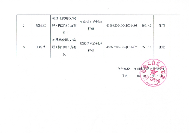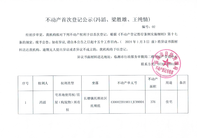 不动产首次登记公示(冯滔、梁胜雄、王纯情)