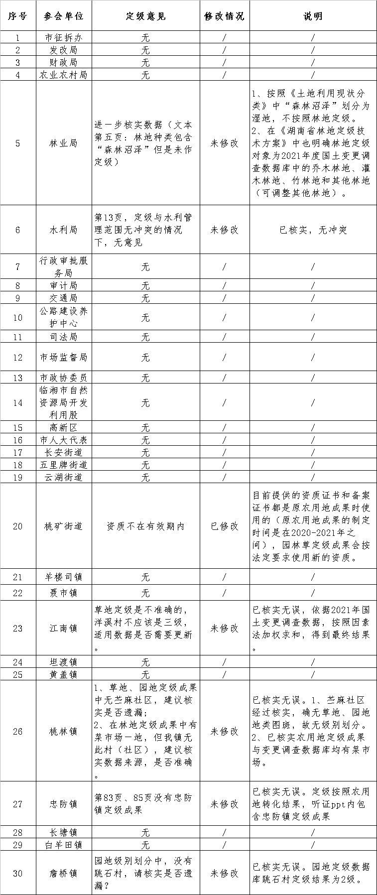临湘市园地、林地、草地定级与基准地价制定听证意见修改情况公告.xlsx