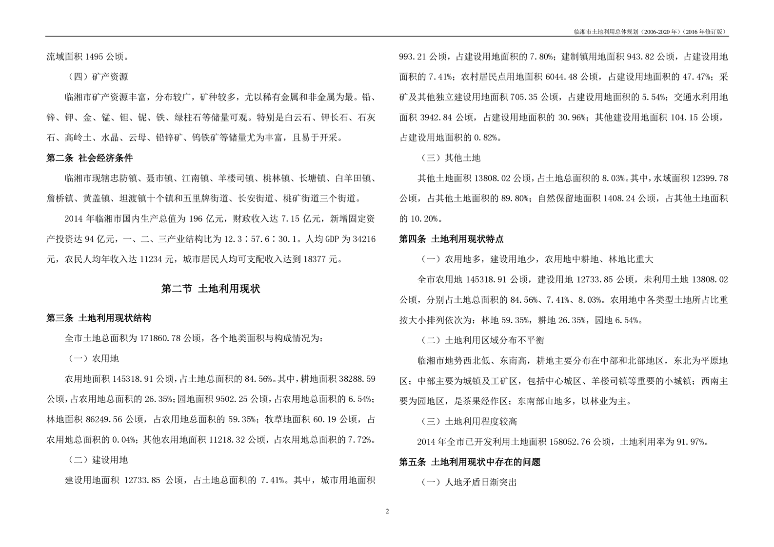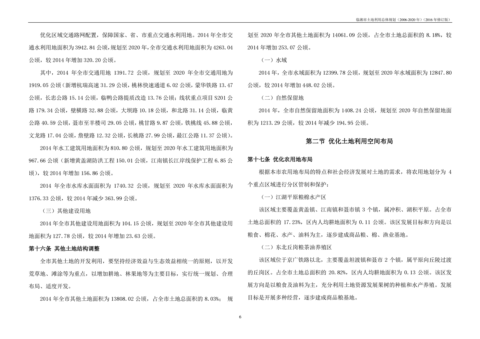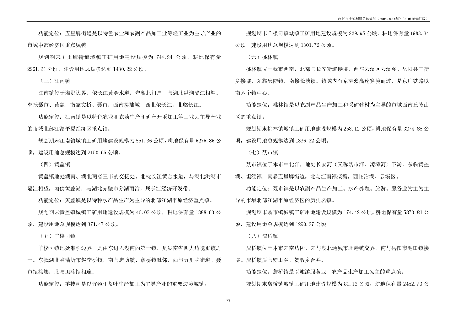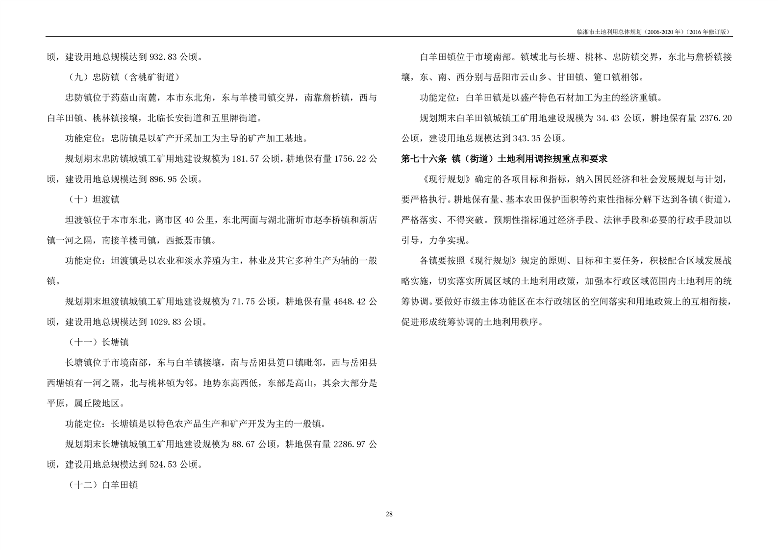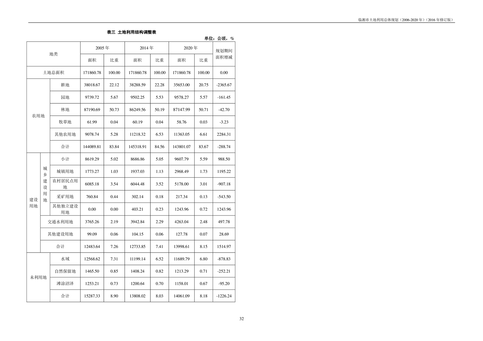 临湘市土地利用总体规划(2006-2020年)2016年修订