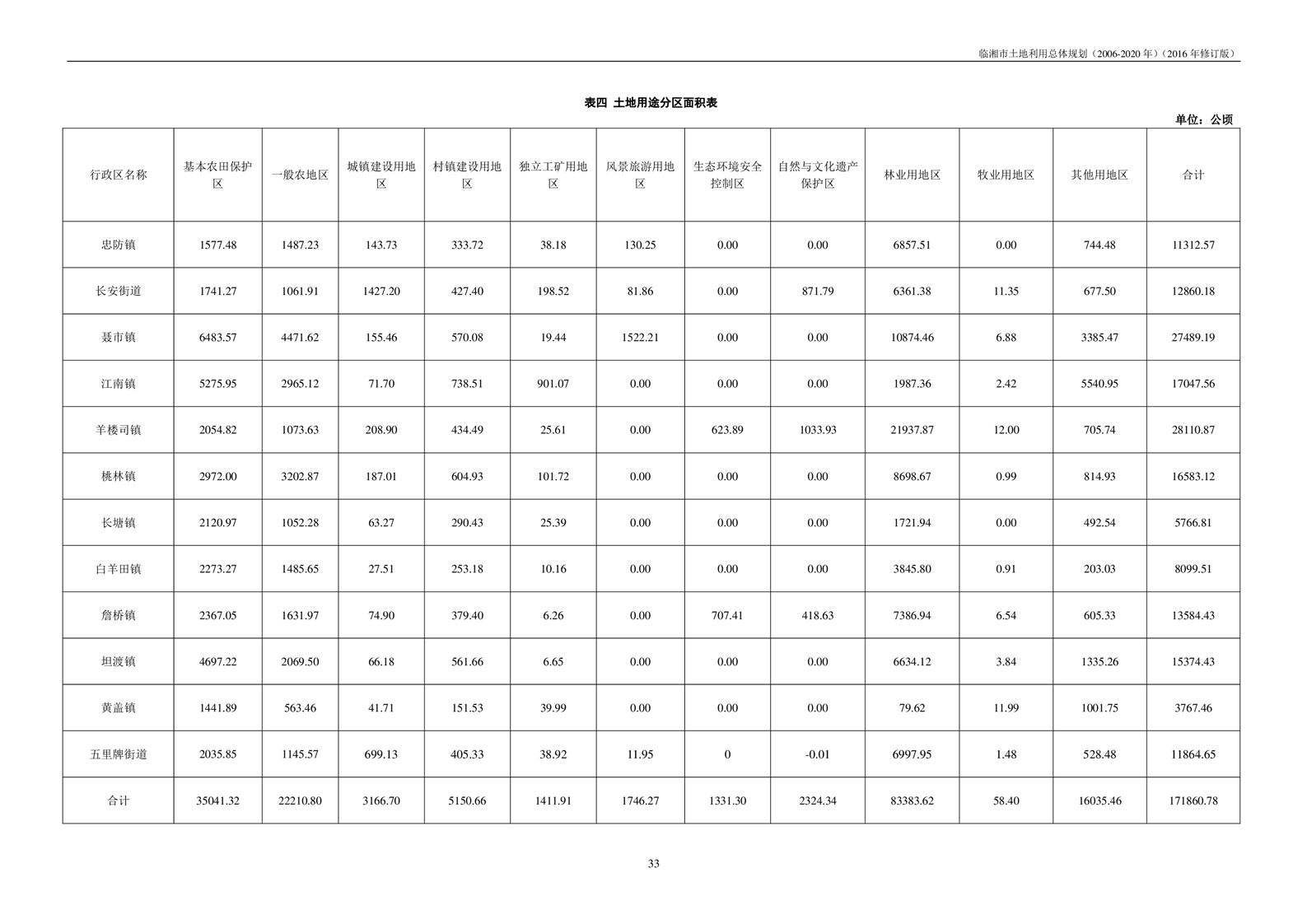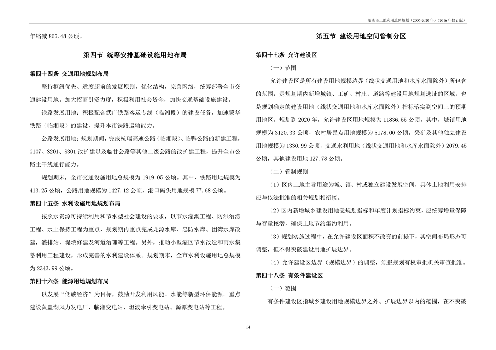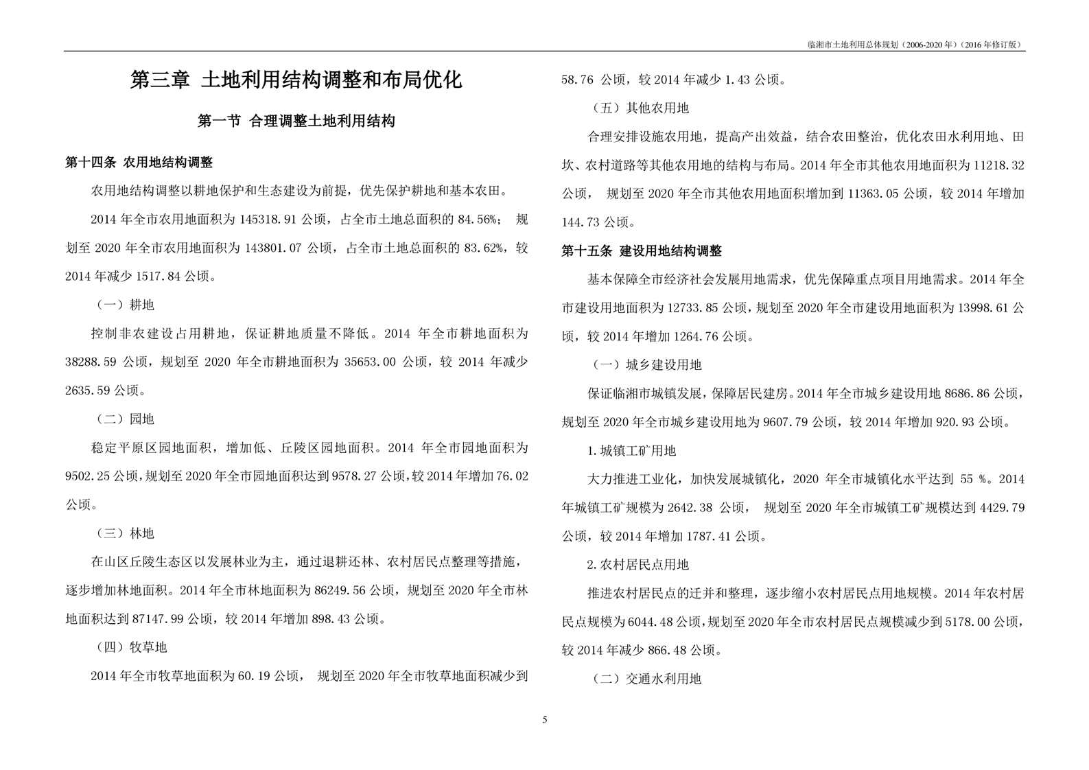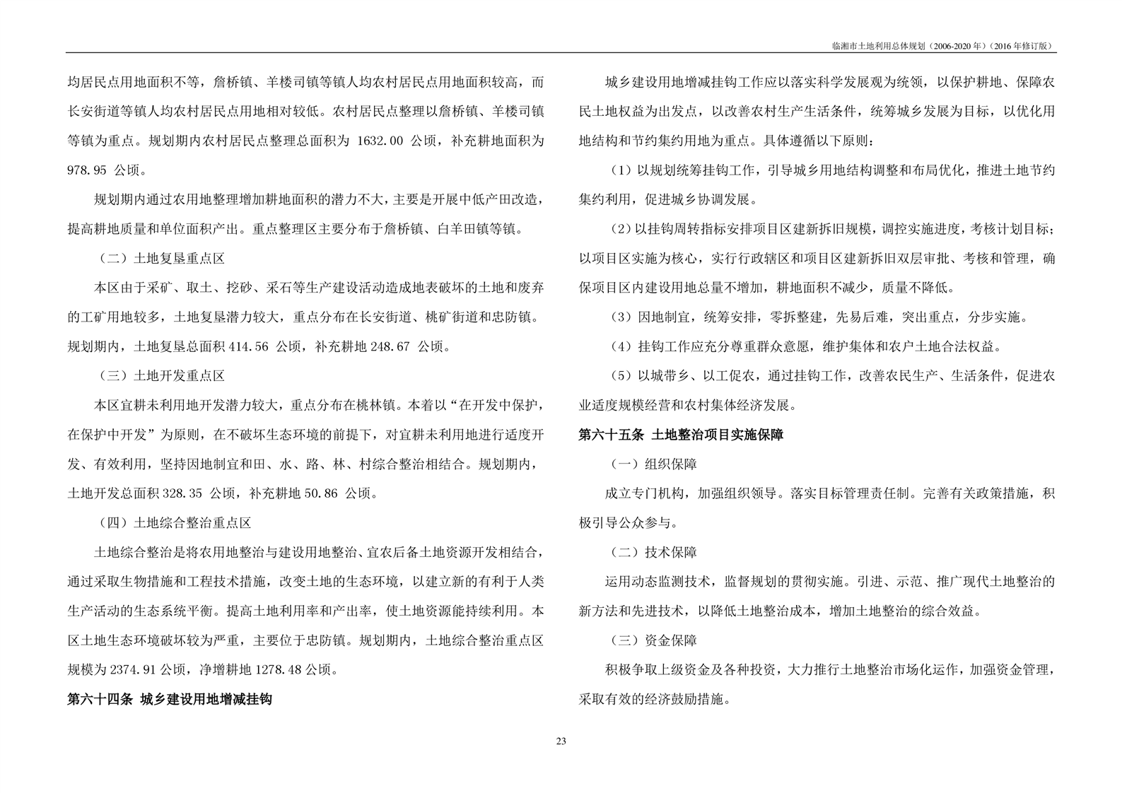 临湘市土地利用总体规划(2006-2020年)2016年修订