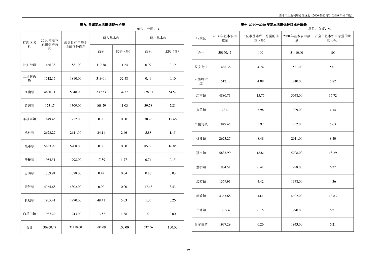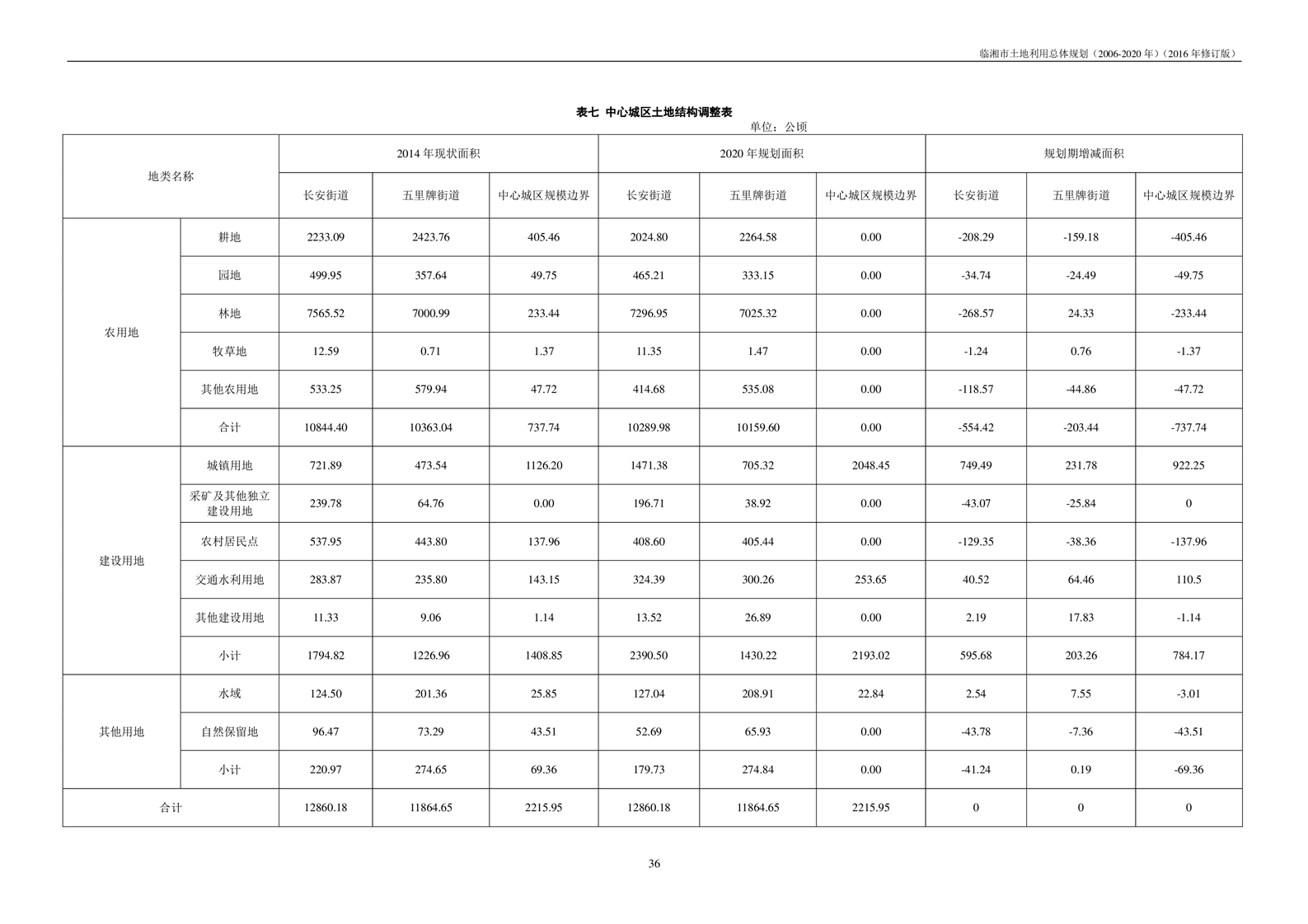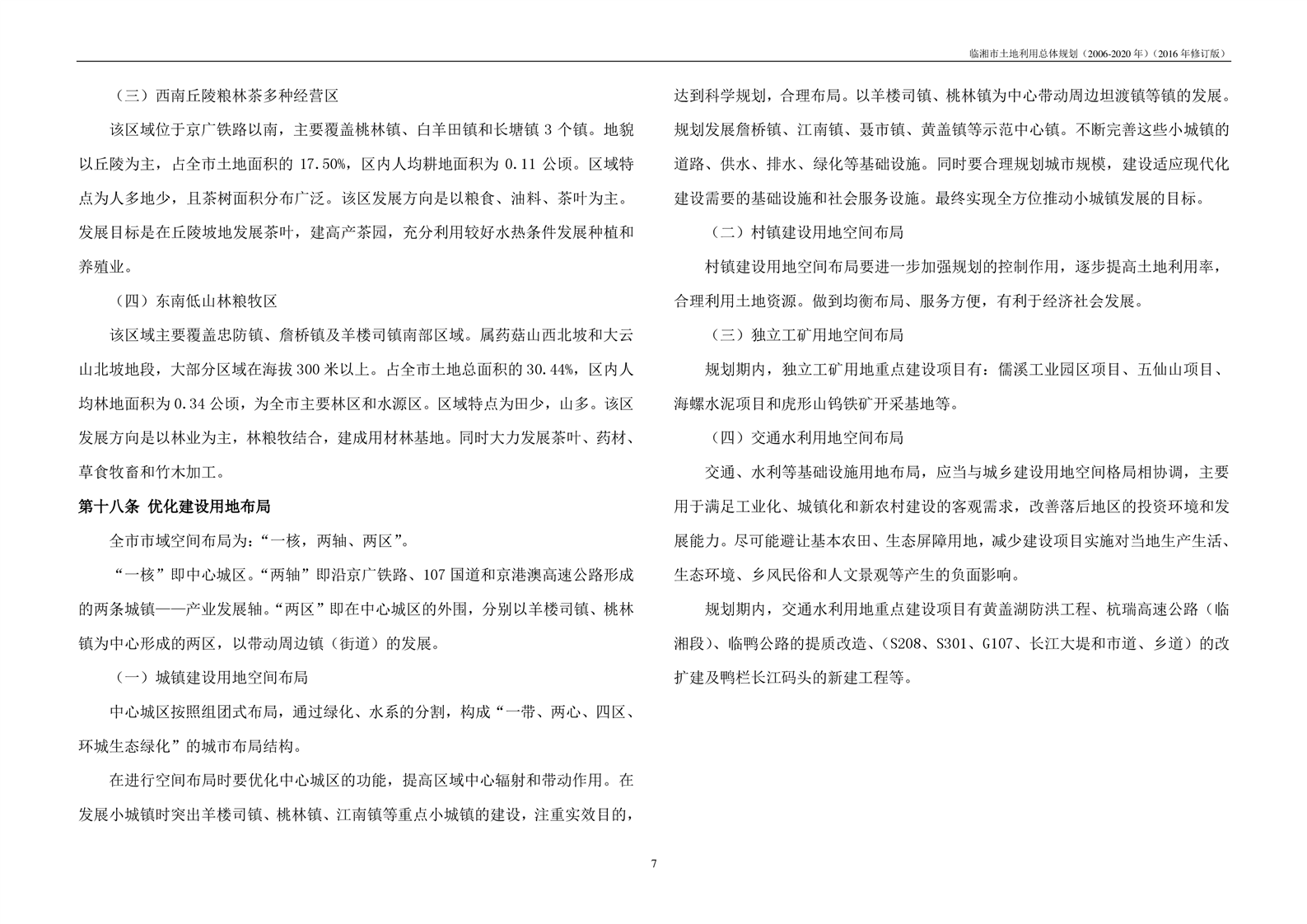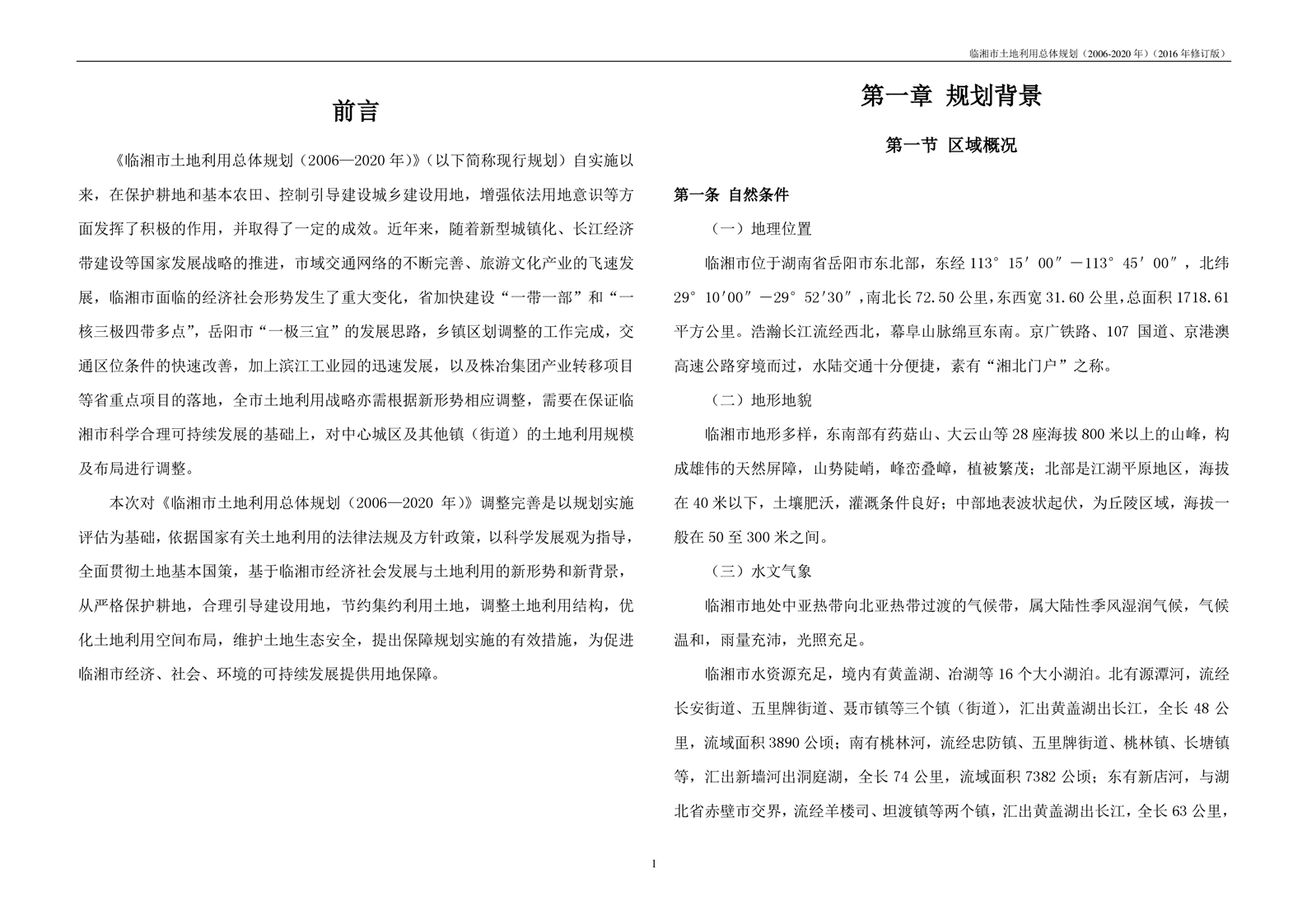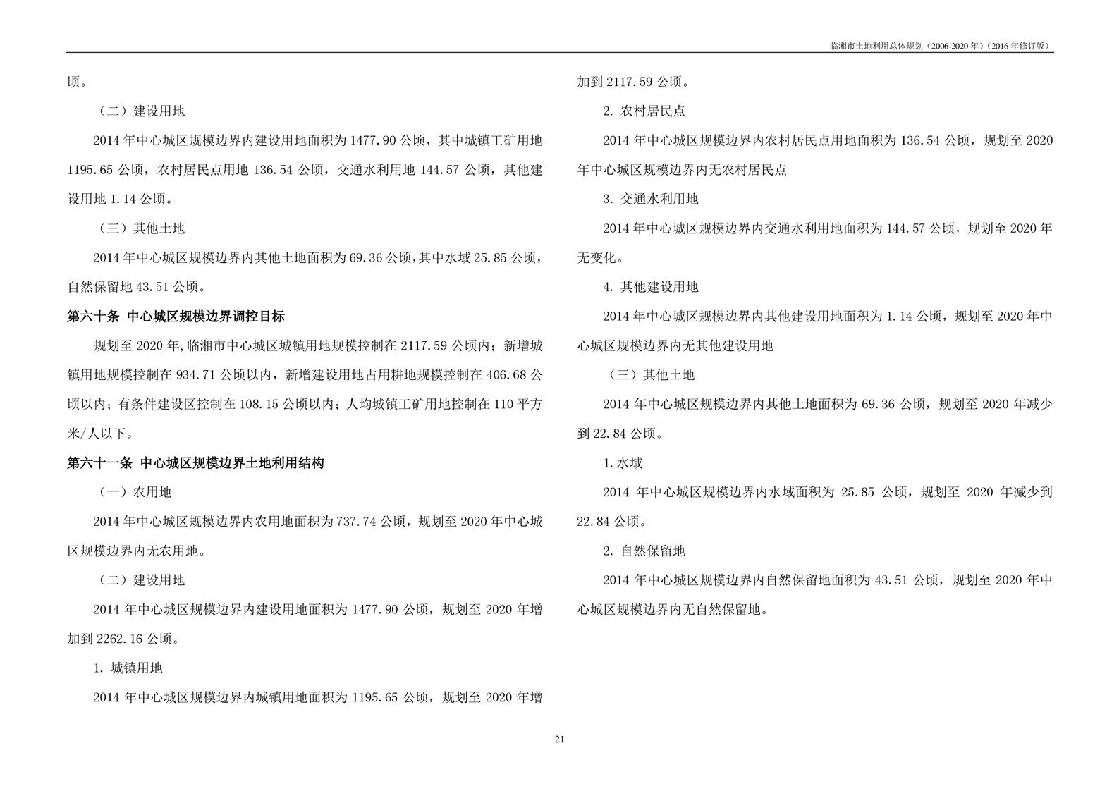 临湘市土地利用总体规划(2006-2020年)2016年修订