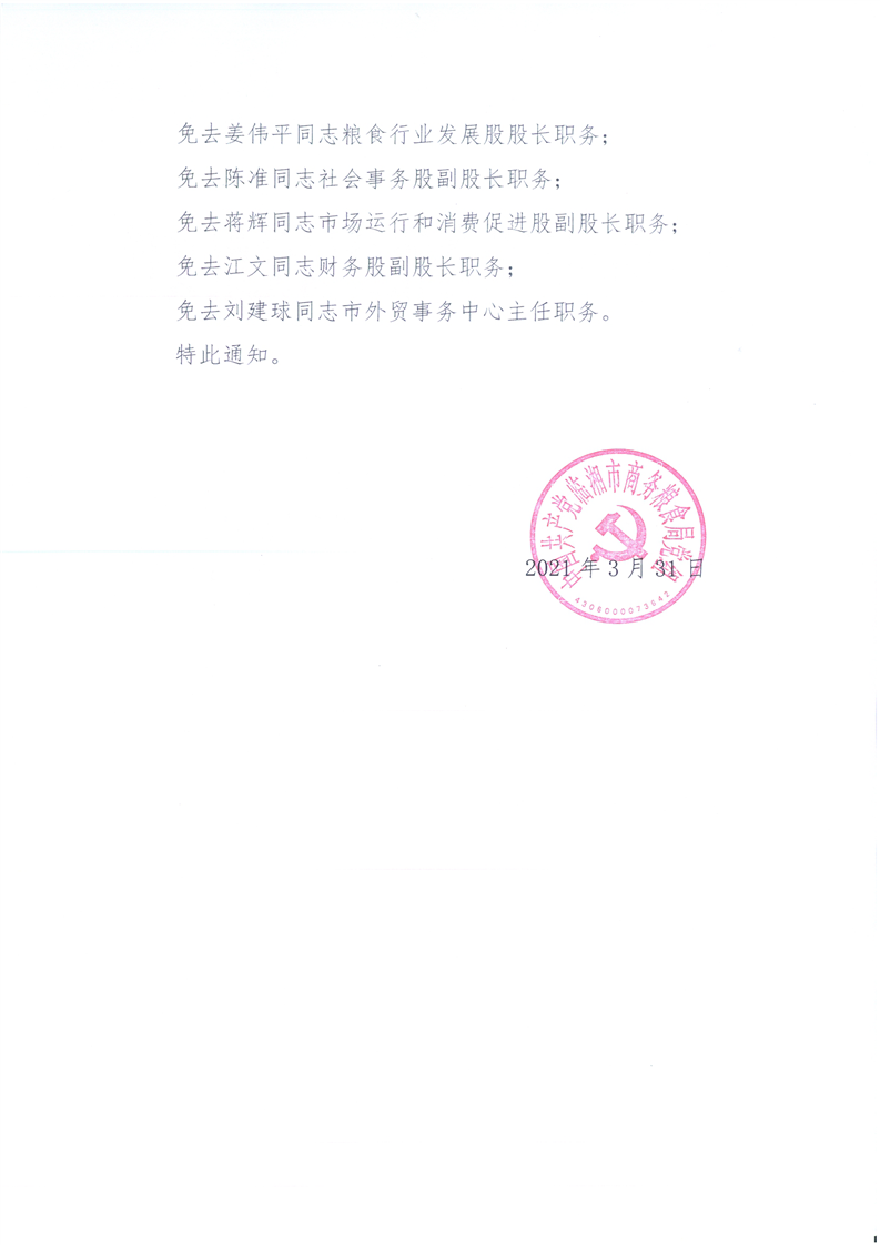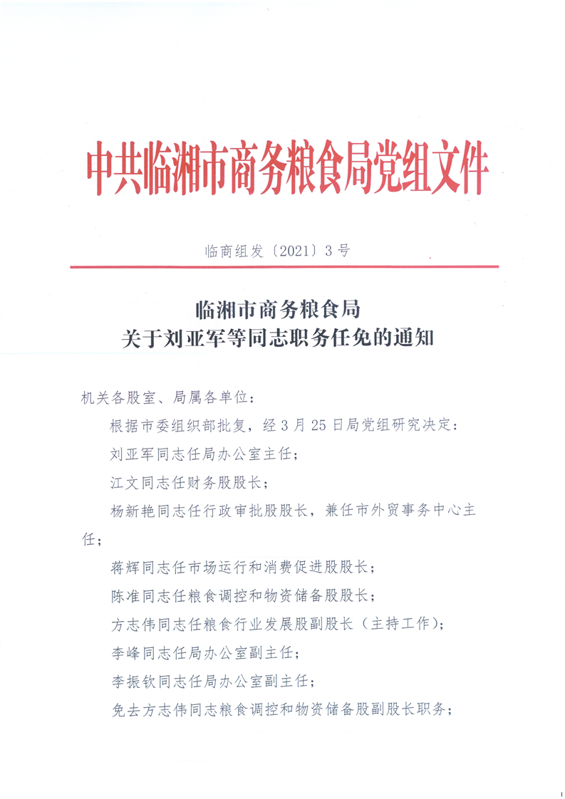 临湘市商务粮食局关于刘亚军等同志职务任免的通知