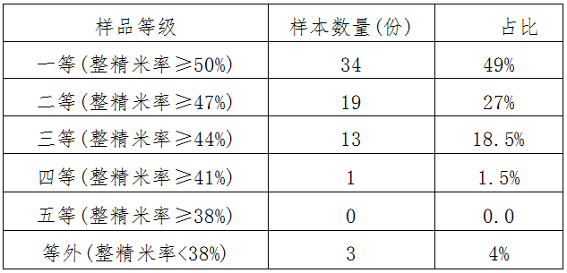 表2:整精米率情况