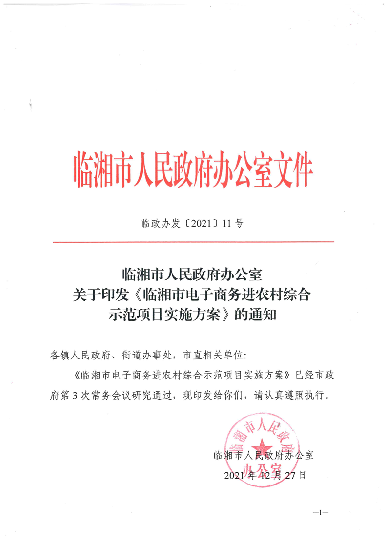 关于印发《临湘市电子商务进农村综合示范项目实施方案》的通知