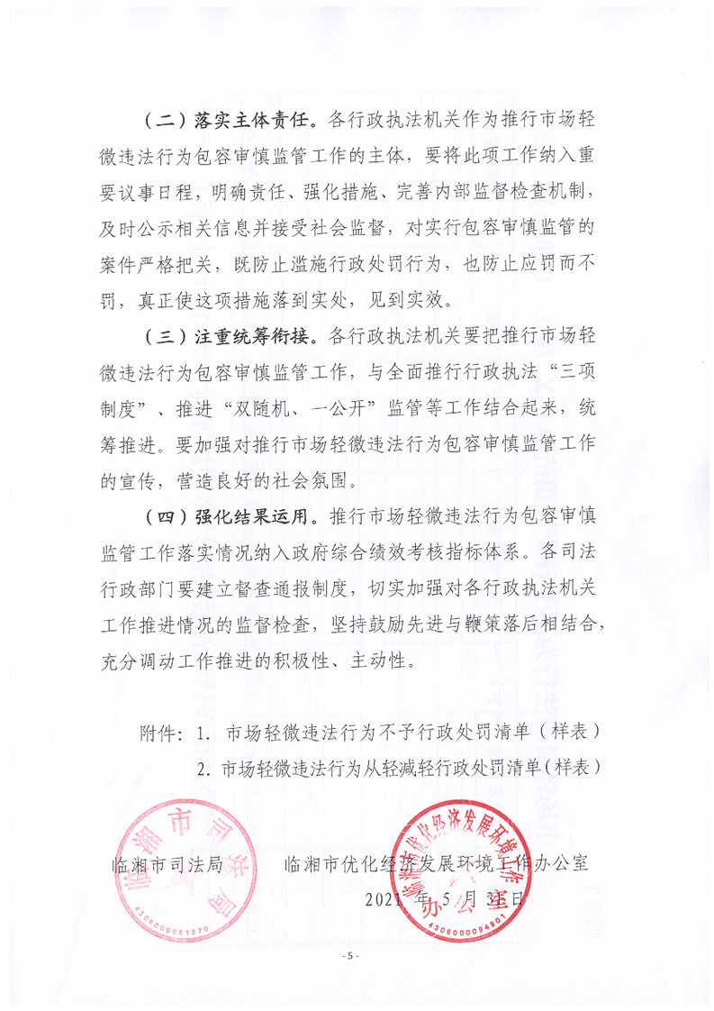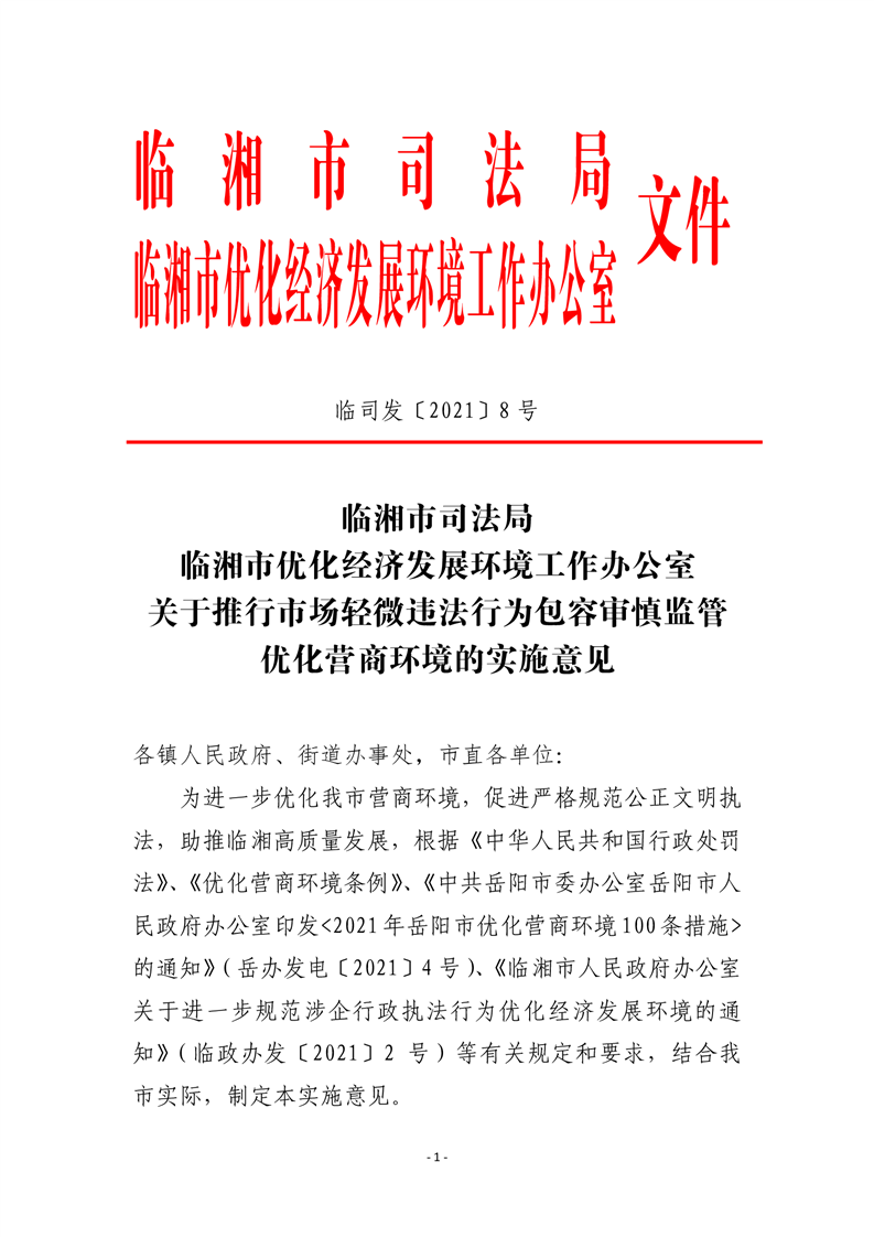 关于推行市场轻微违法行为包容审慎监管优化营商环境的实施意见