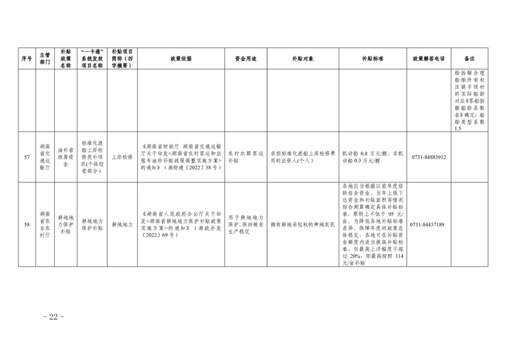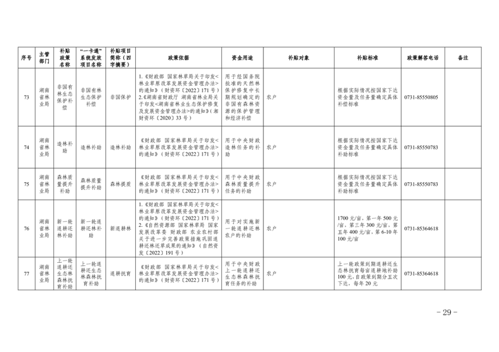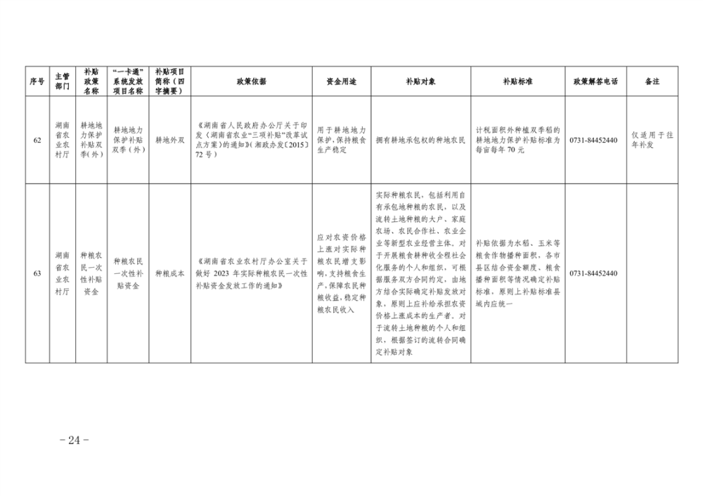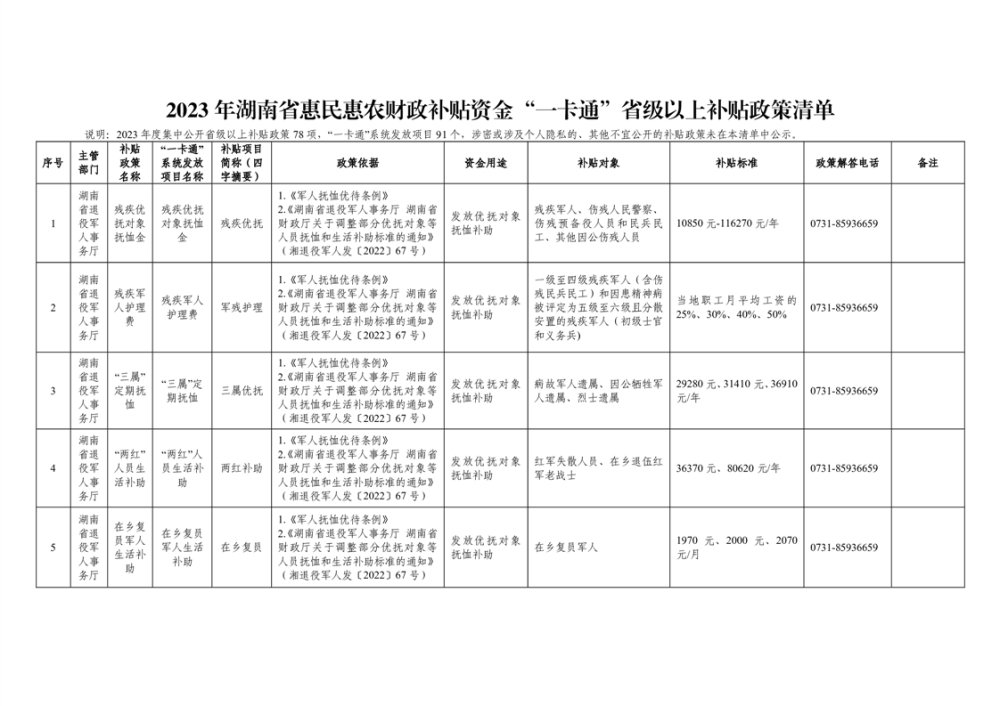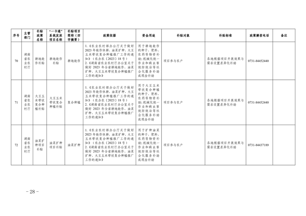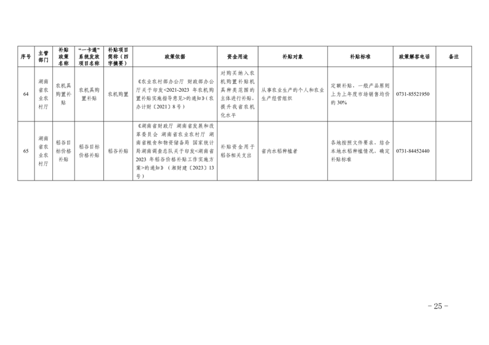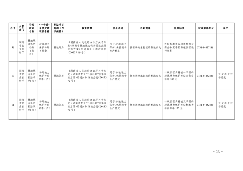 2023年湖南省惠民惠农财政补贴资金“一卡通”省级以上补贴政策清单