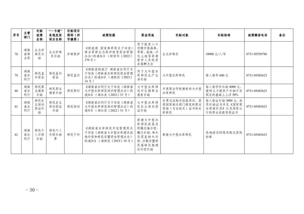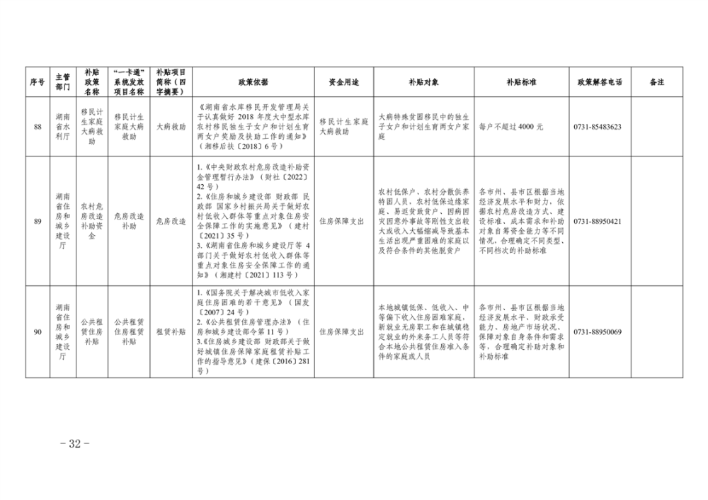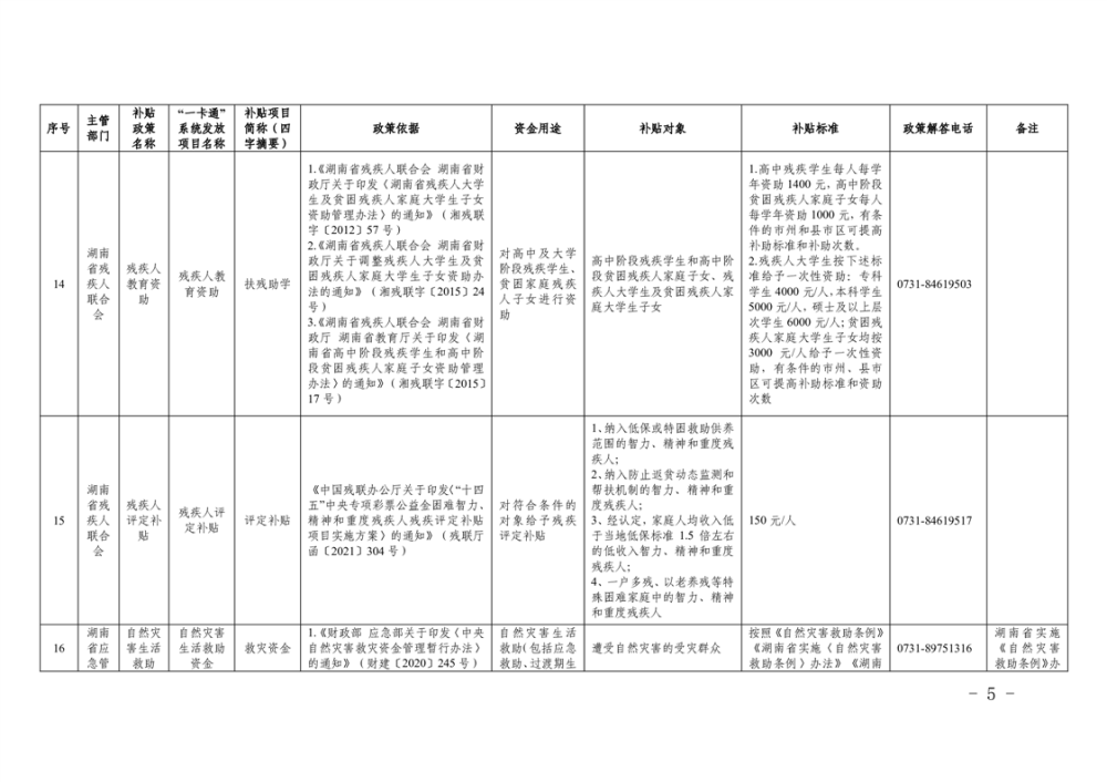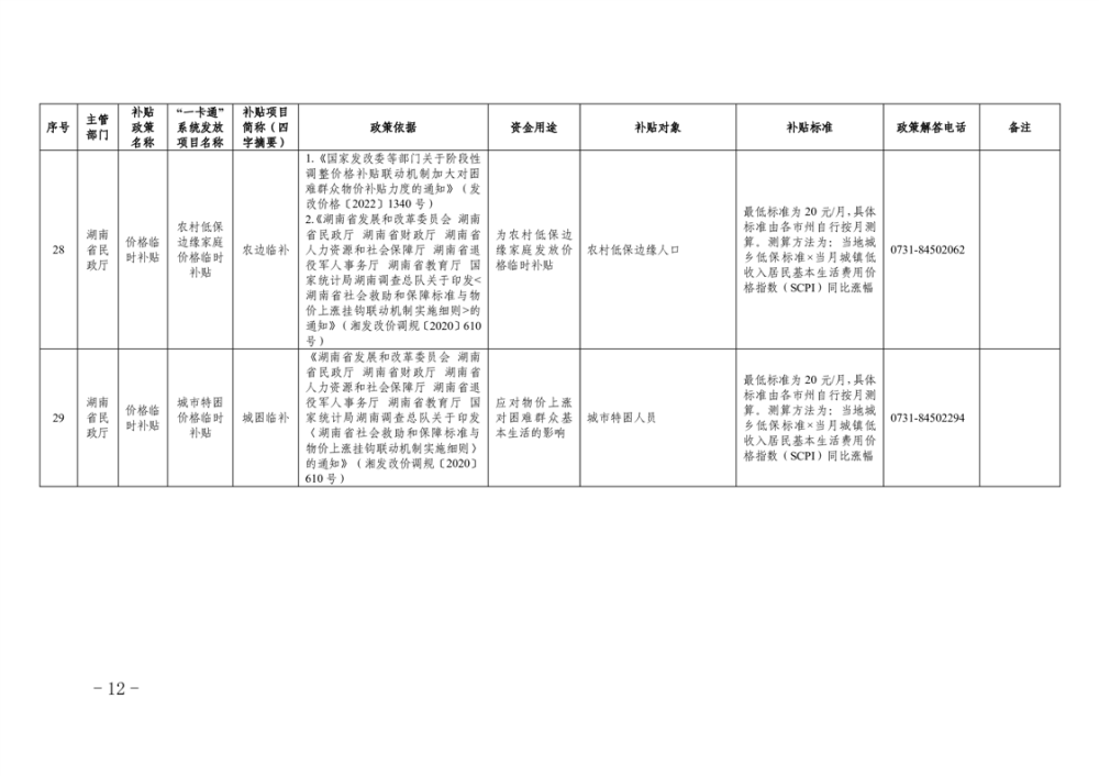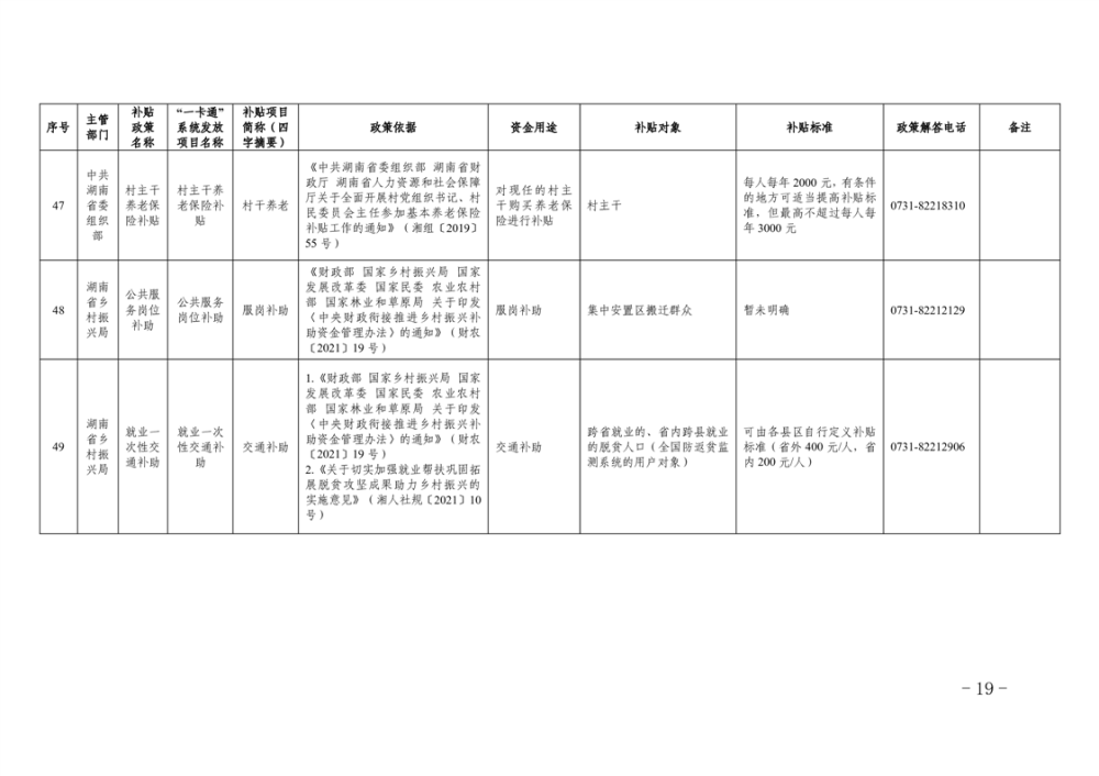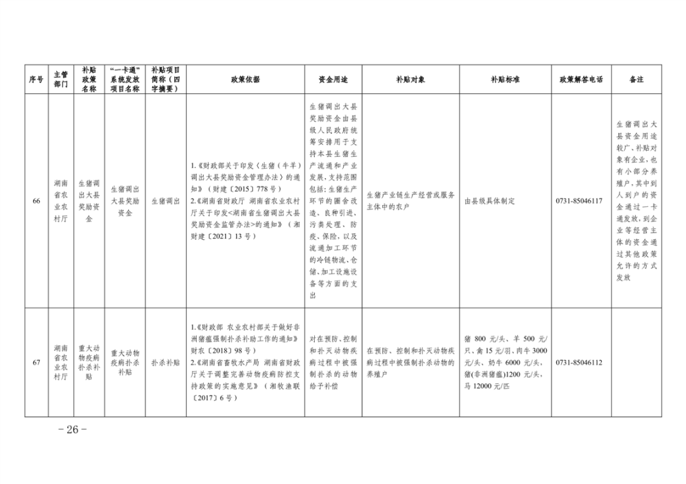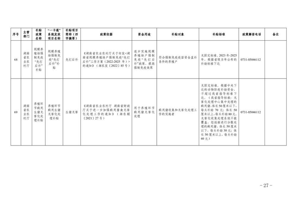 2023年湖南省惠民惠农财政补贴资金“一卡通”省级以上补贴政策清单