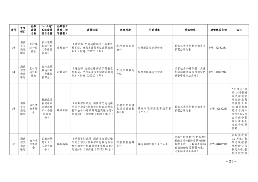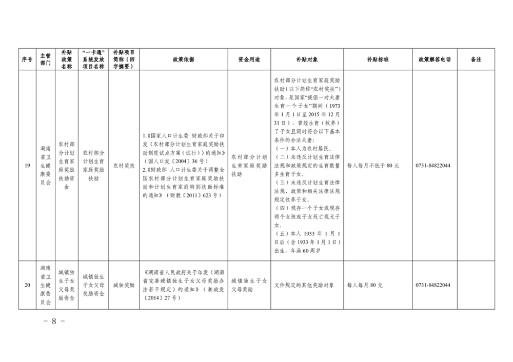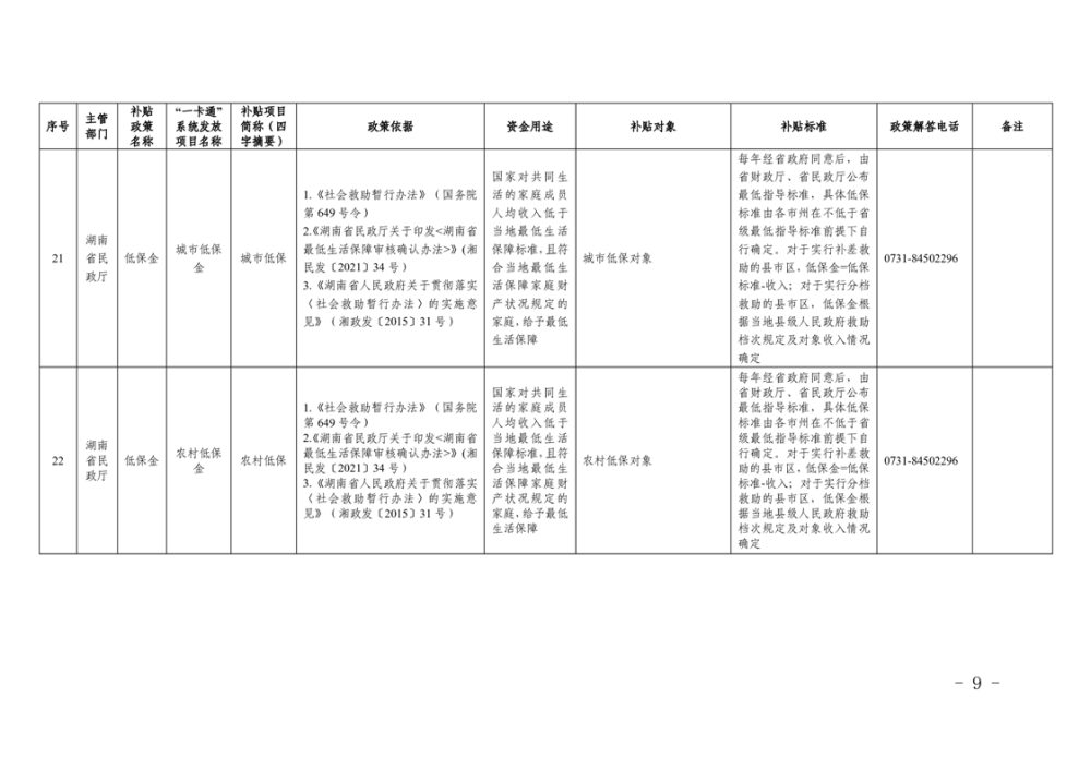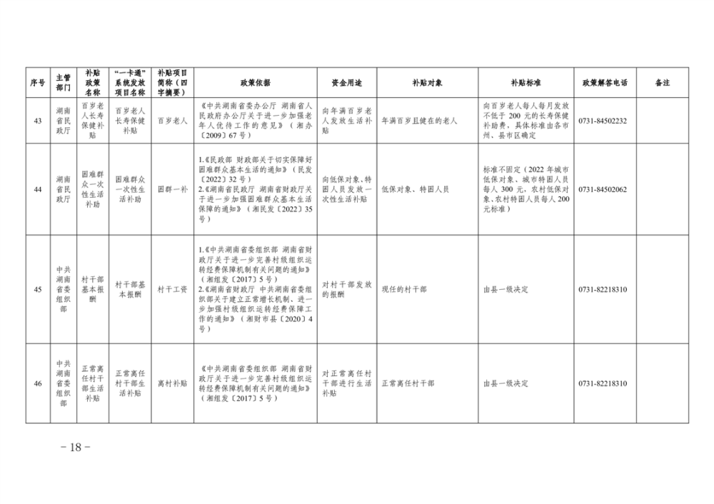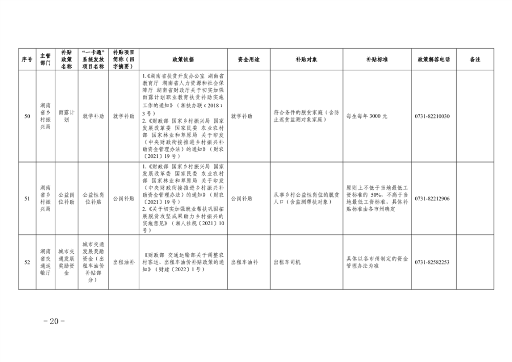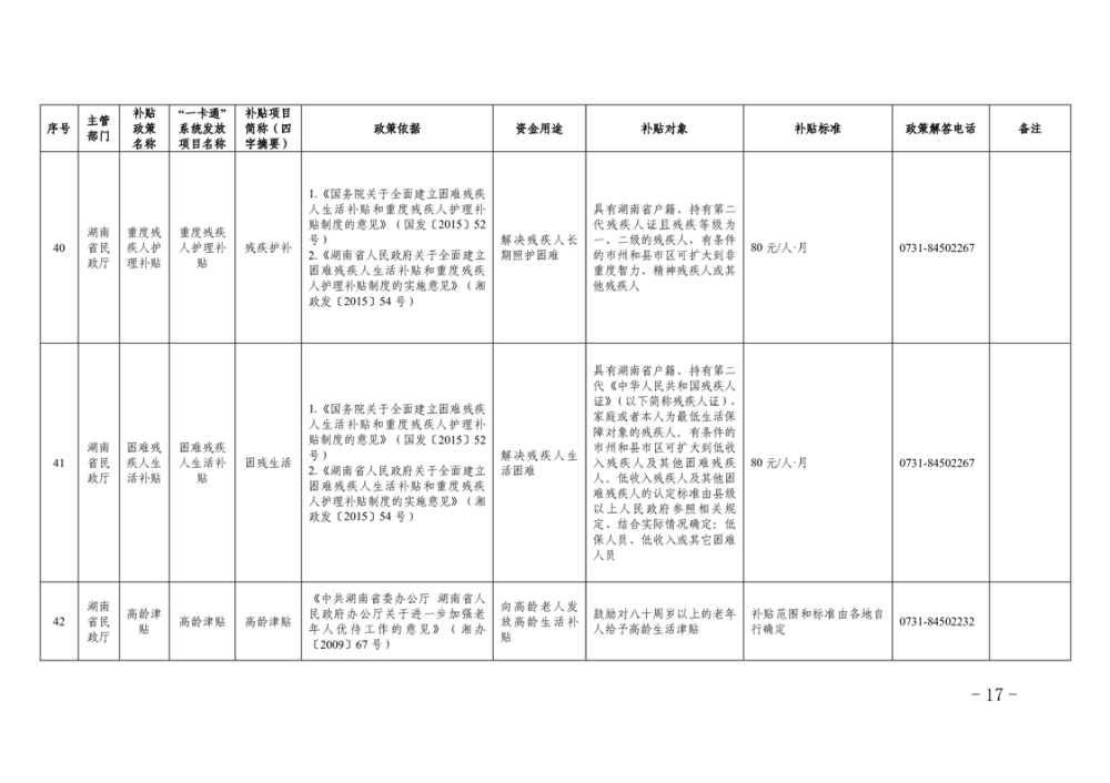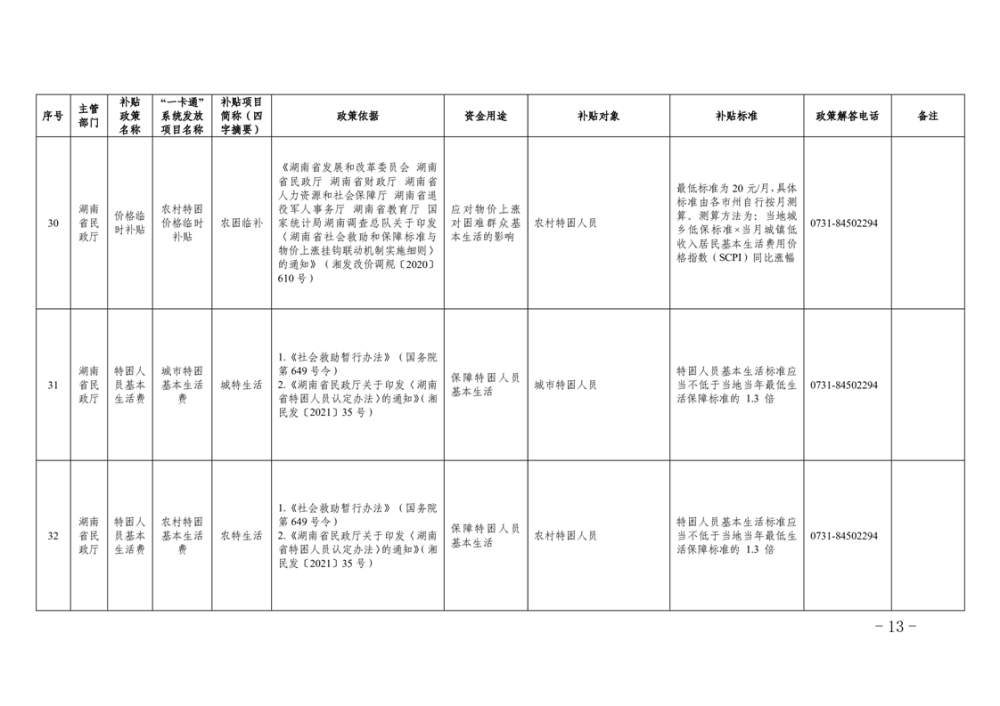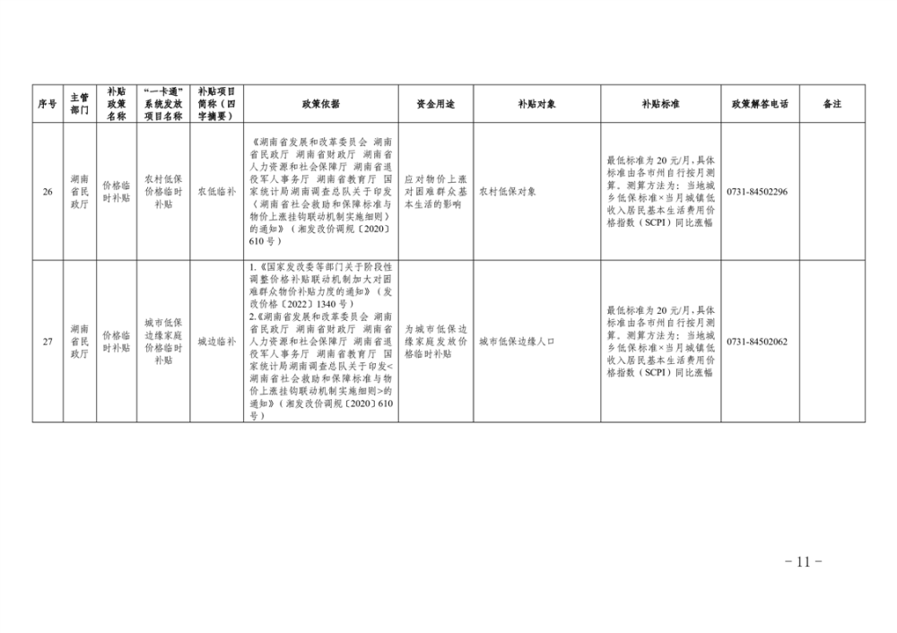 2023年湖南省惠民惠农财政补贴资金“一卡通”省级以上补贴政策清单