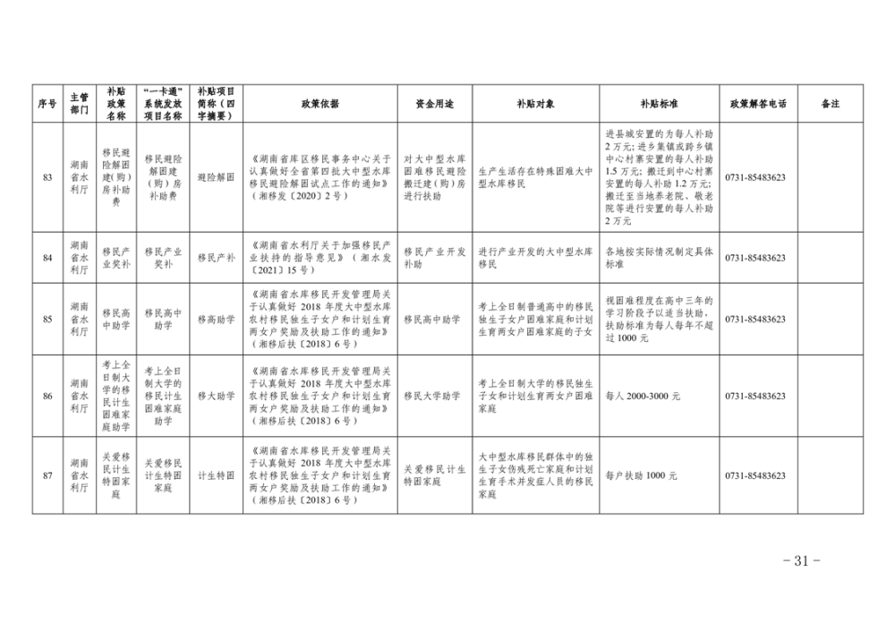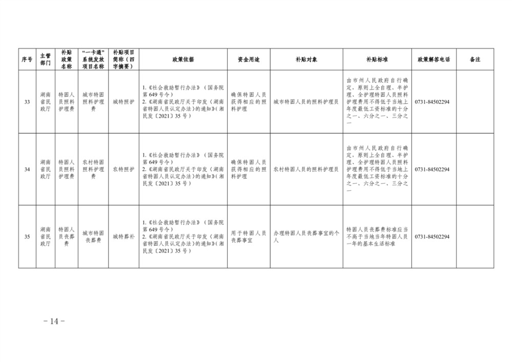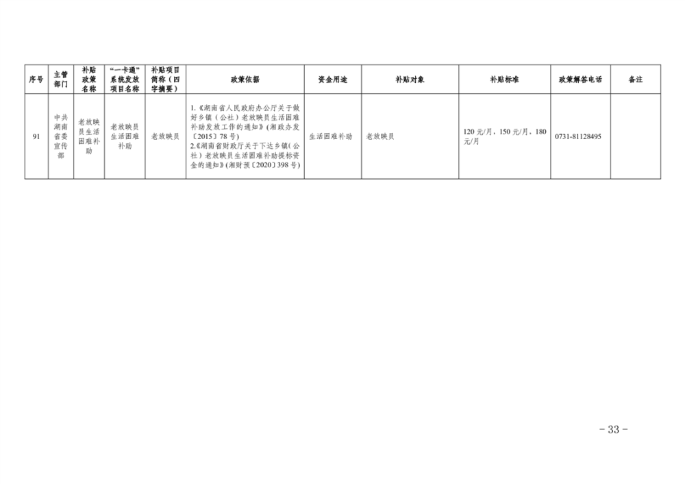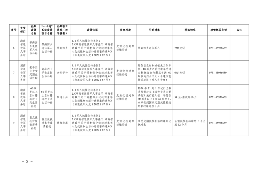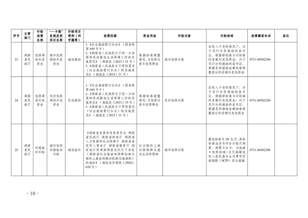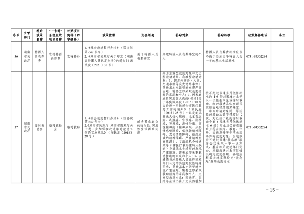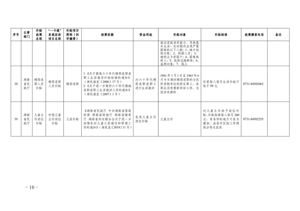 2023年湖南省惠民惠农财政补贴资金“一卡通”省级以上补贴政策清单