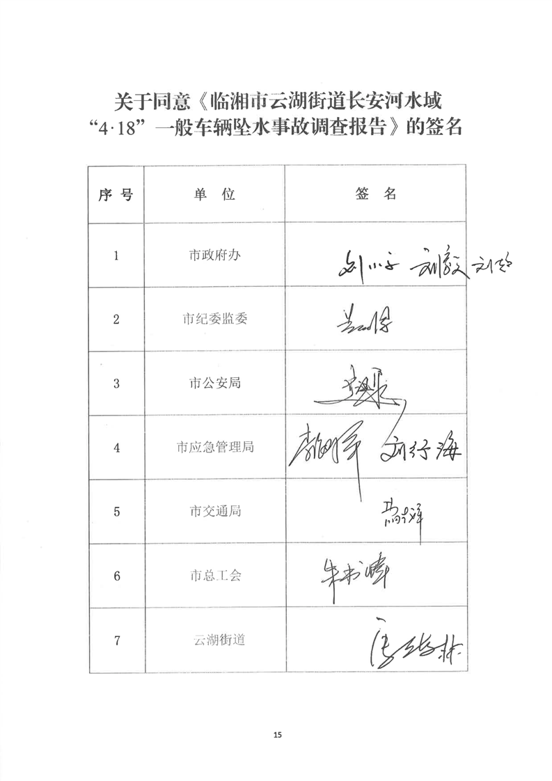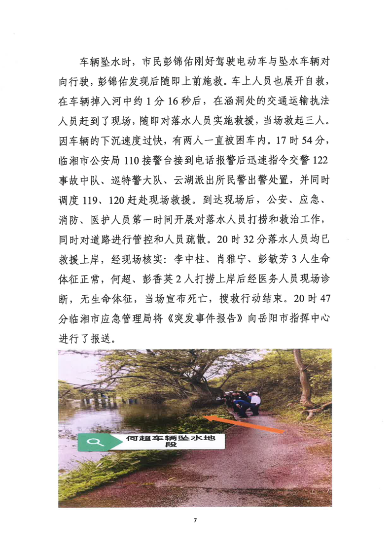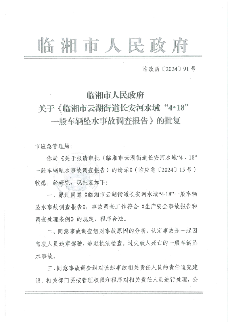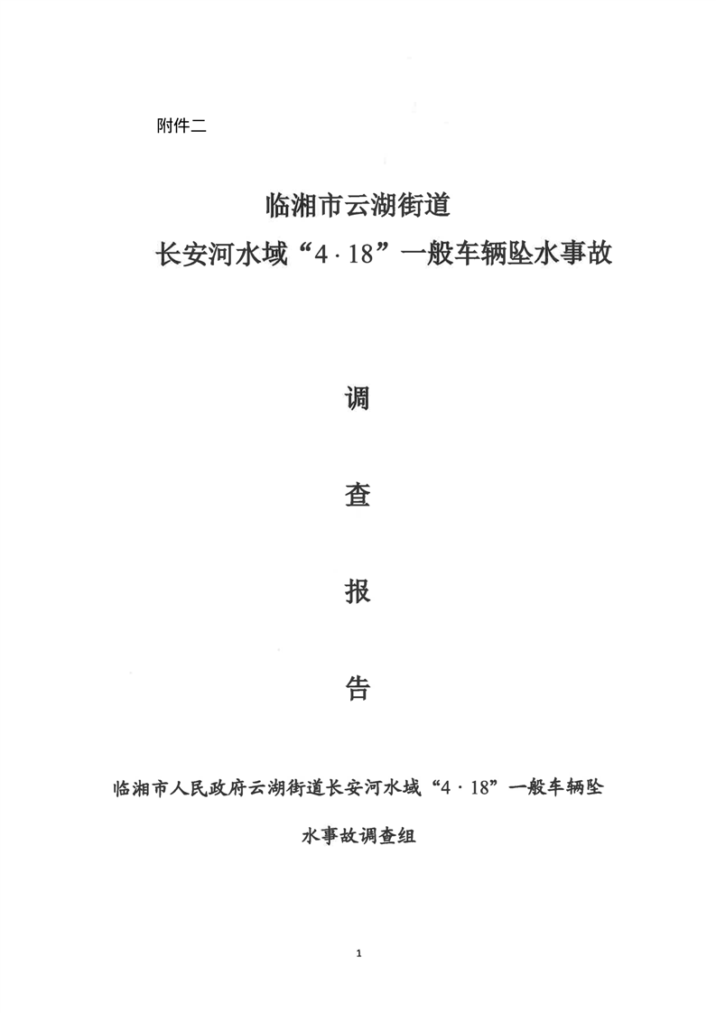 临湘市云湖街道长安河水域“4﹒18”一般车辆坠水事故调查报告
