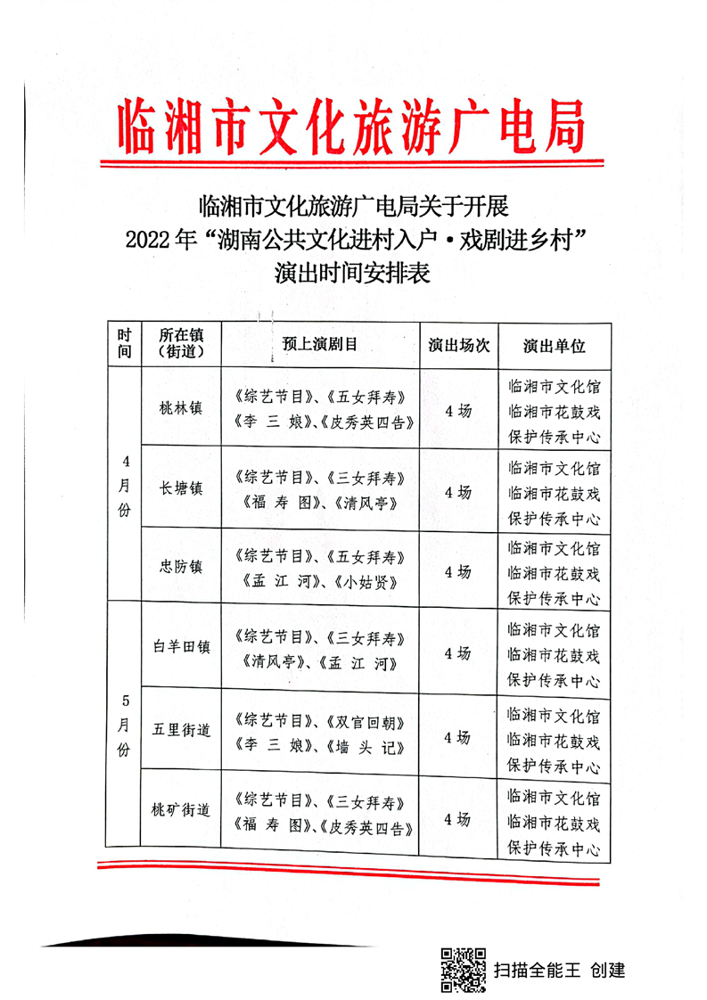 湖南“公共文化进村入户·戏剧进乡村”演出时间安排表公示