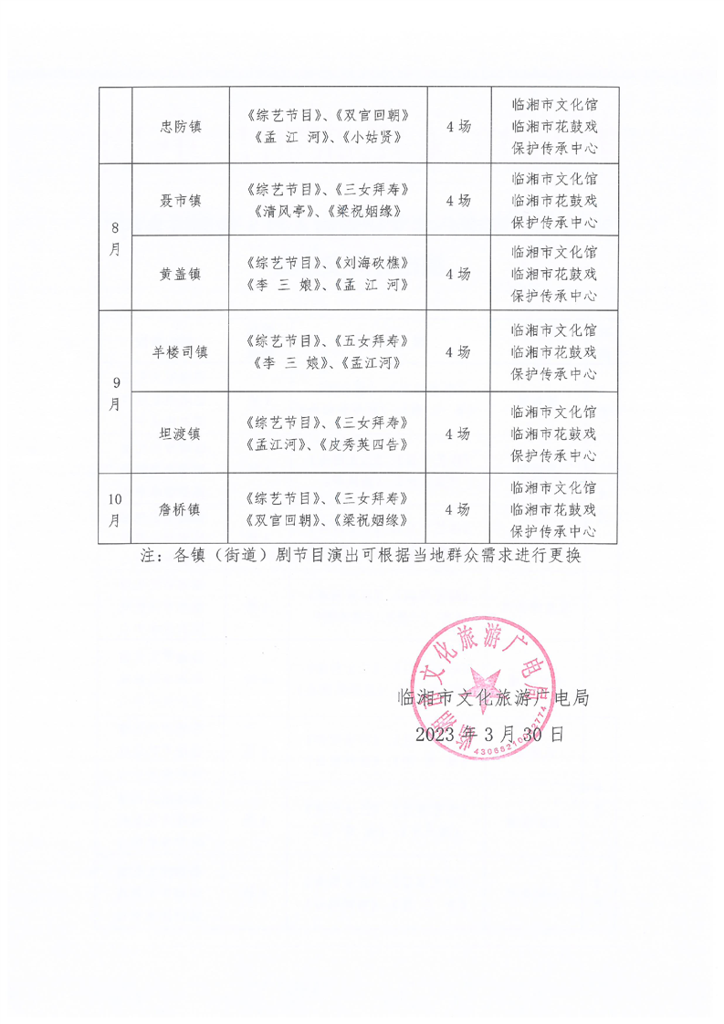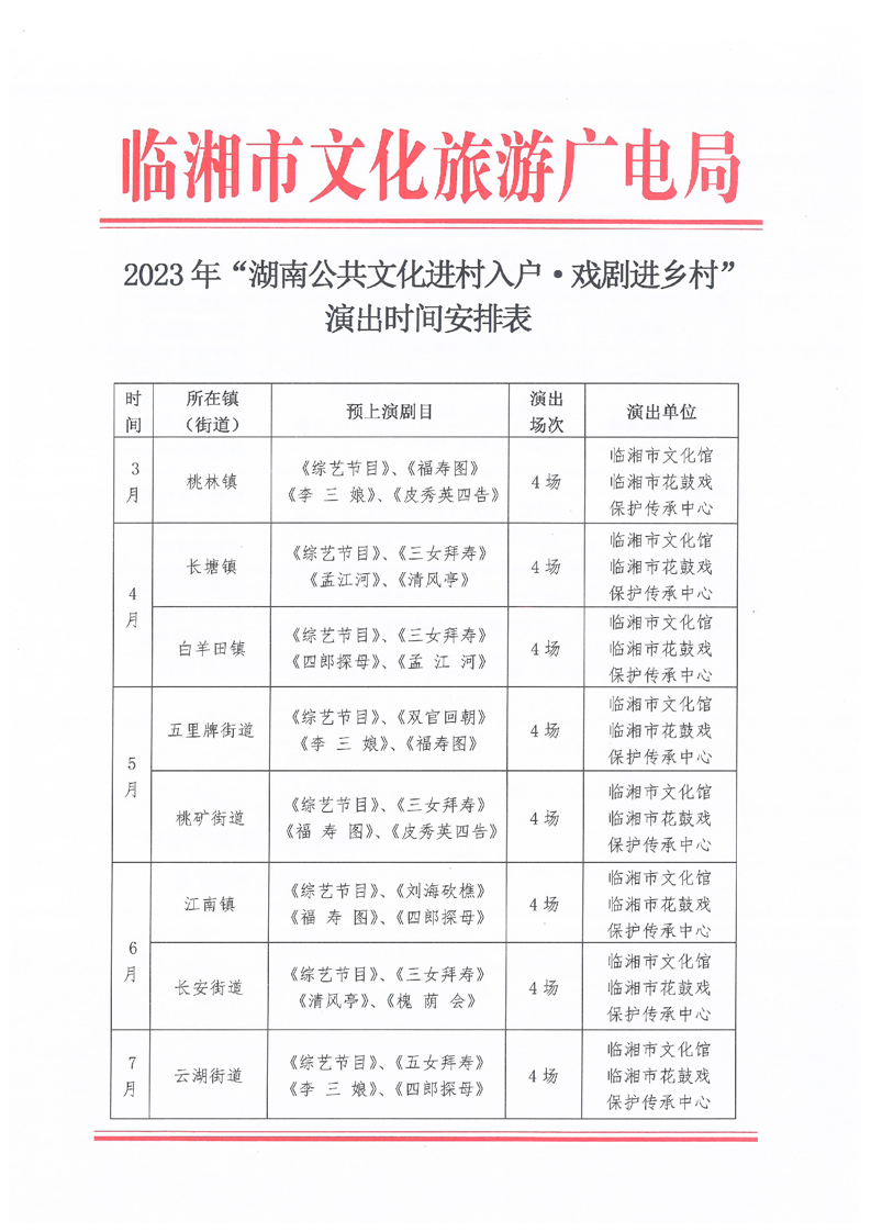 2023年“湖南公共文化进村入户 戏剧进乡村”演出时间安排表