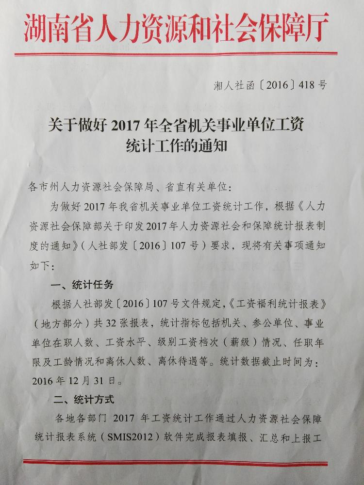 关于做好2017年全省机关事业单位工资统计工作的通知