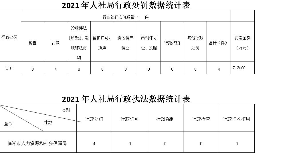 临湘市人力资源和社会保障局2021年行政执法总体情况