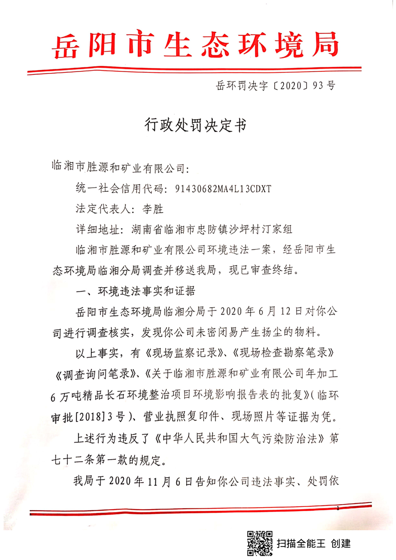 岳环罚决字[2020]93号