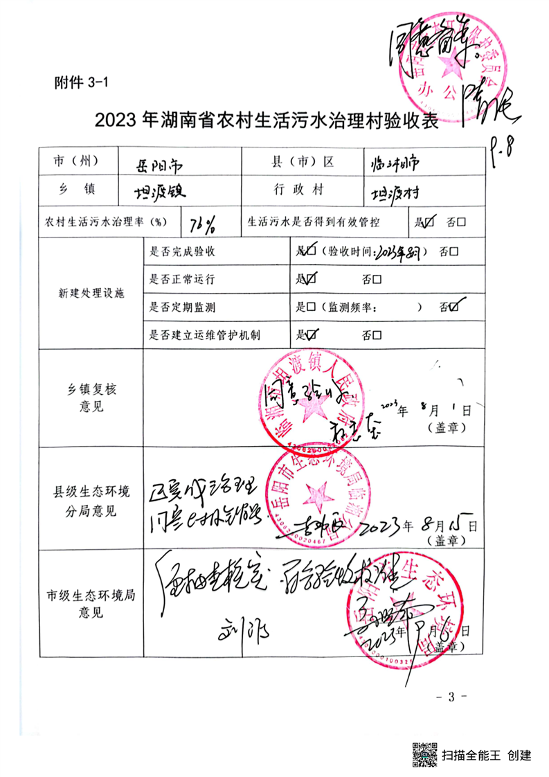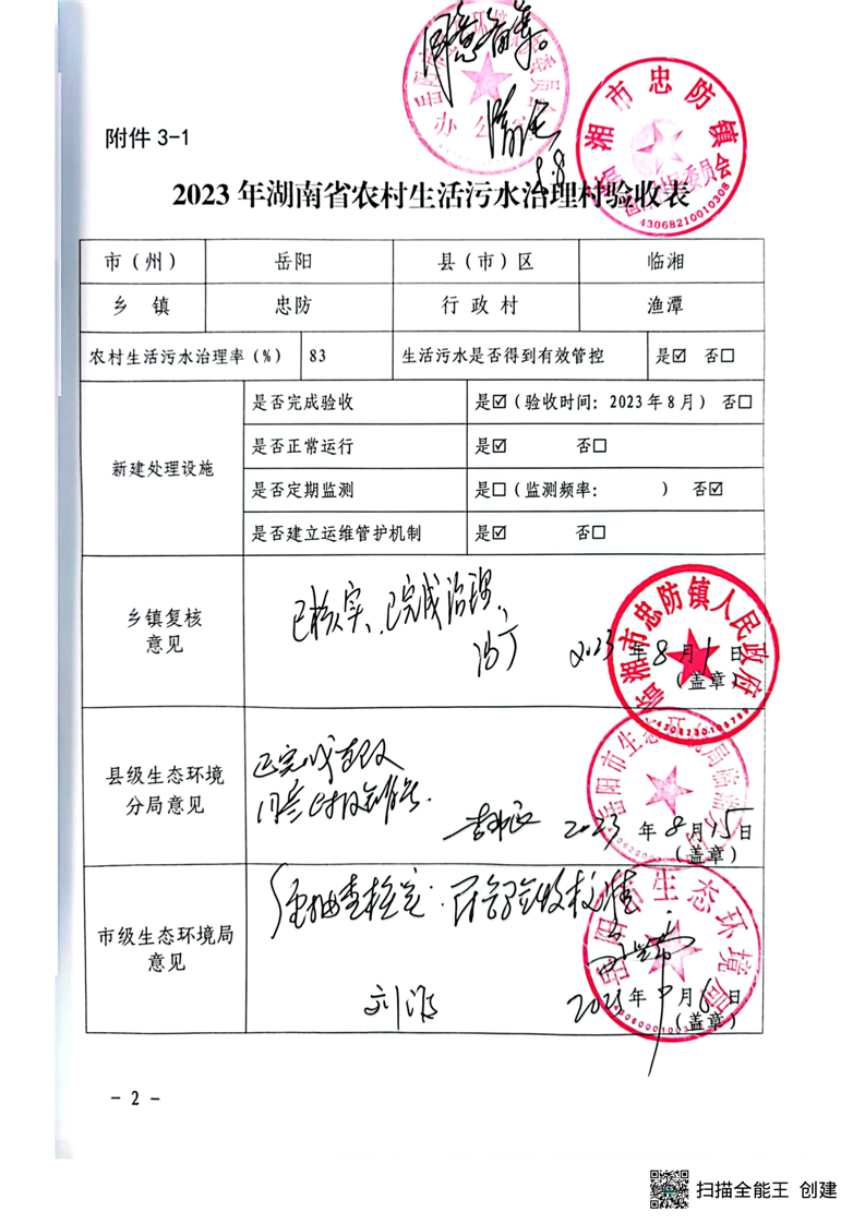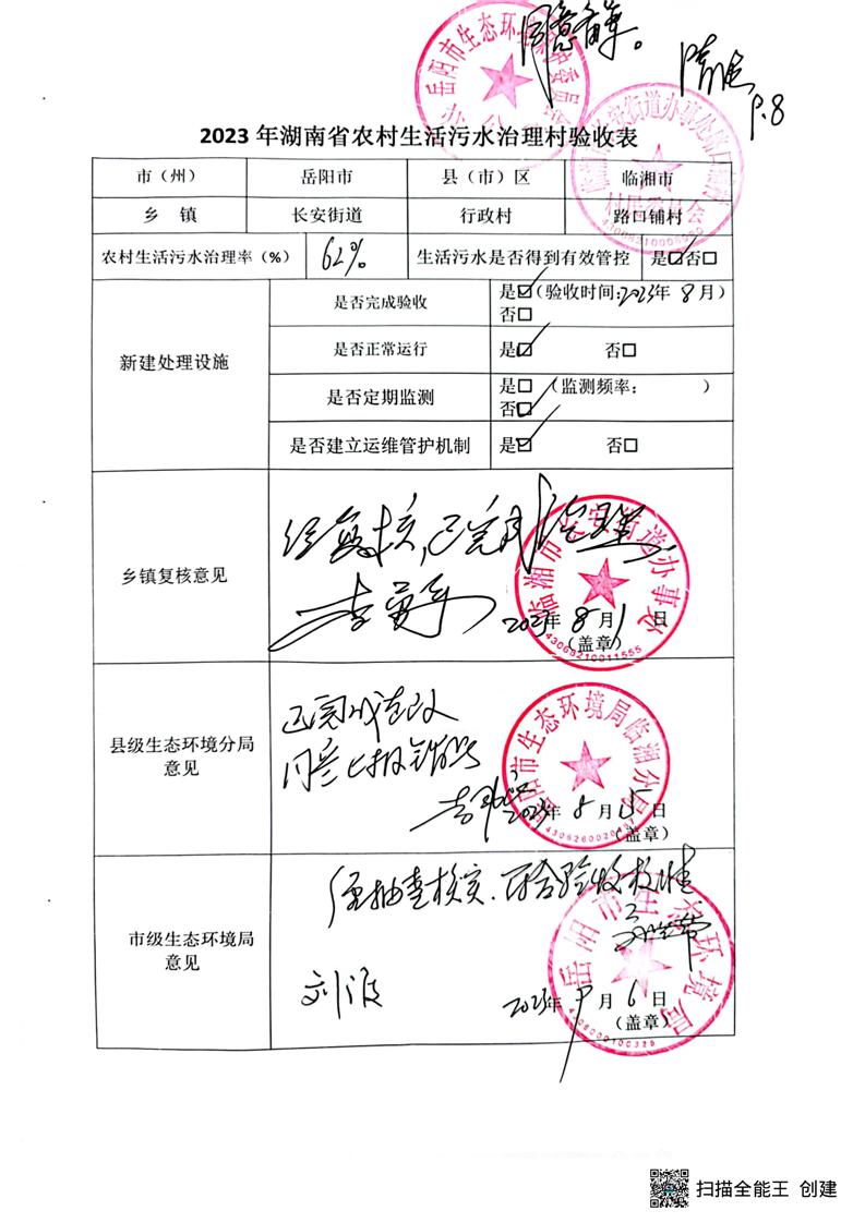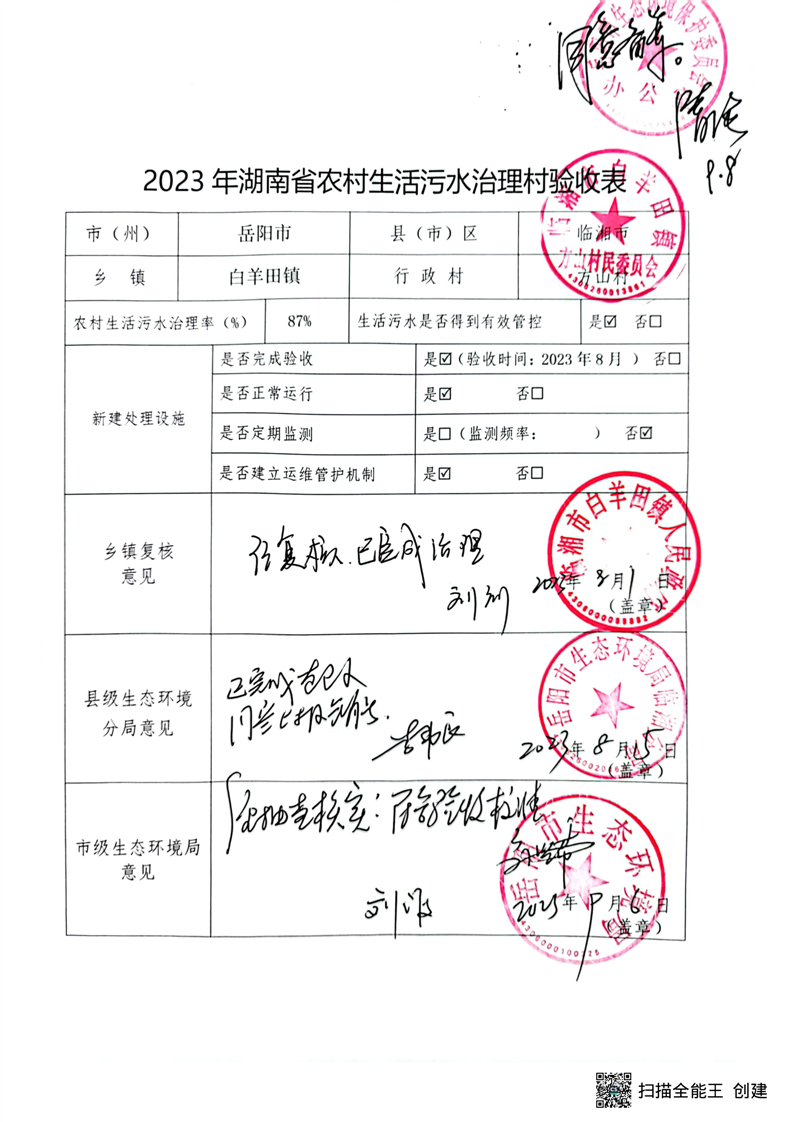 2023年10个农村生活污水治理任务村销号表公示