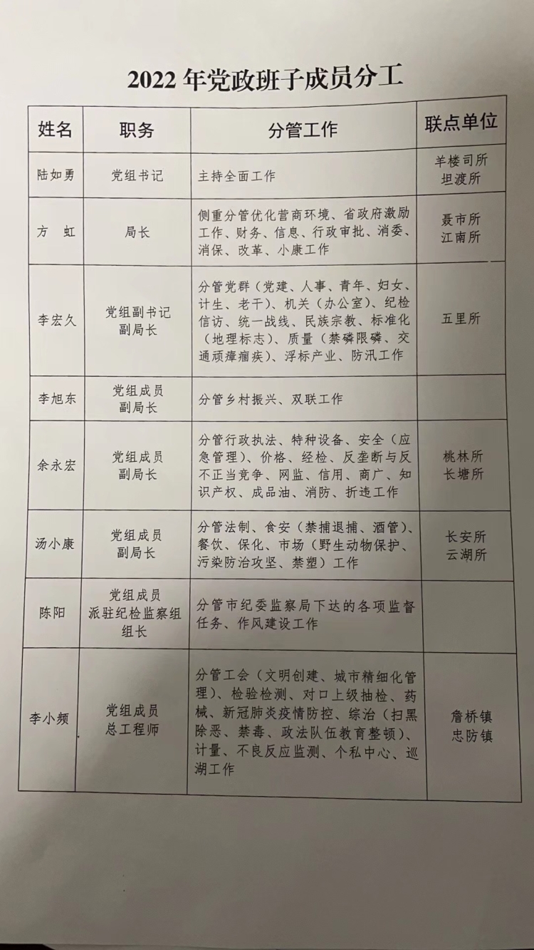 2022年党政班子成员分工