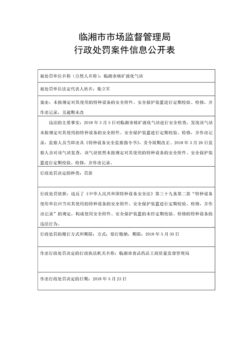 临湘市桃矿液化气站行政处罚案件信息公开表