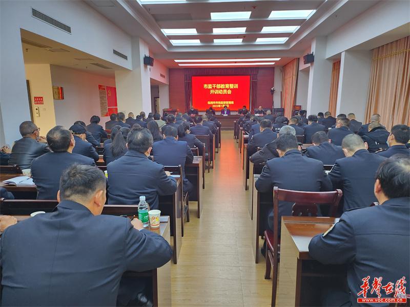 为全面加强市场监管队伍建设,切实严肃工作纪律,改进工作作风,不断提升队伍素质,1月9日,临湘市市场监督管理局召开市监干部教育整训开训动员会,全局42个部门,约110名中层正副职以上干部参加。动员会正式吹响号角,号令全局干部职工开展集中学习整训,开启业务强兵新征程,通过学理论、查问题、谈体会、强训练、抓落实,加强全系统干部队伍建设,打造市场监管铁军。临湘市副市长杨善出席并讲话。