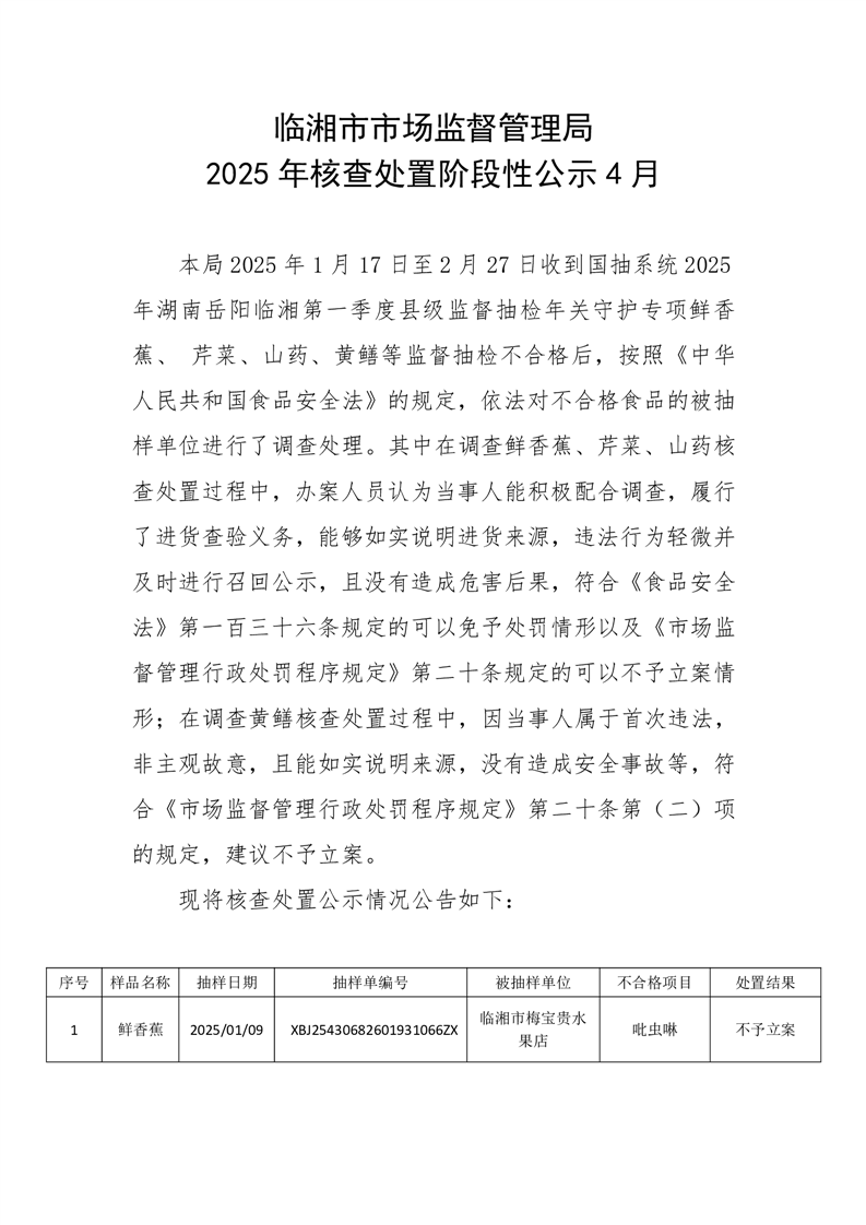 临湘市市场监督管理局 2025年核查处置阶段性公示4月