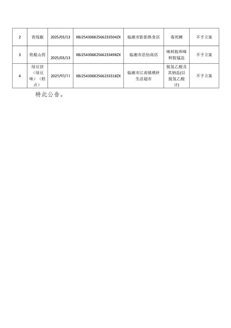 临湘市市场监督管理局 2025年核查处置阶段性公示6月