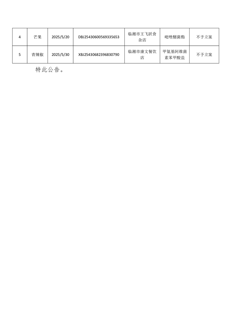 临湘市市场监督管理局 2025年核查处置阶段性公示8月