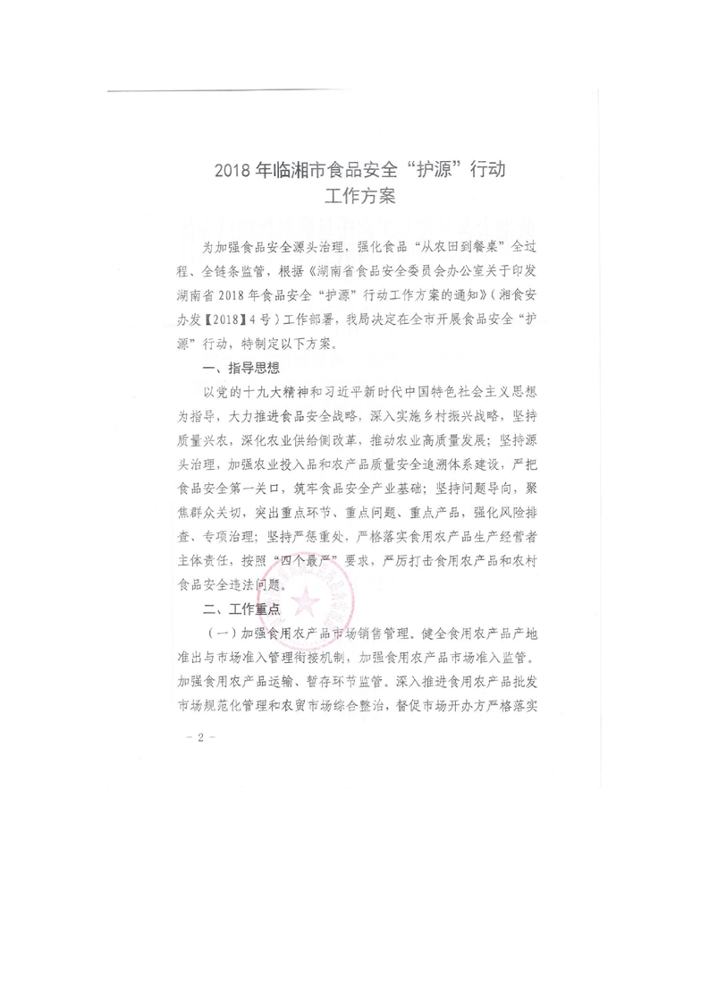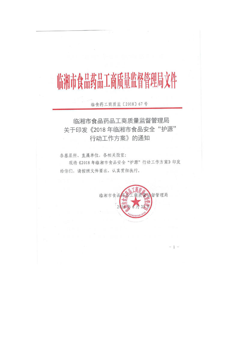 临湘市食品药品工商质量监督管理局关于印发《2018年临湘市食品安全“护源”行动工作方案》的通知