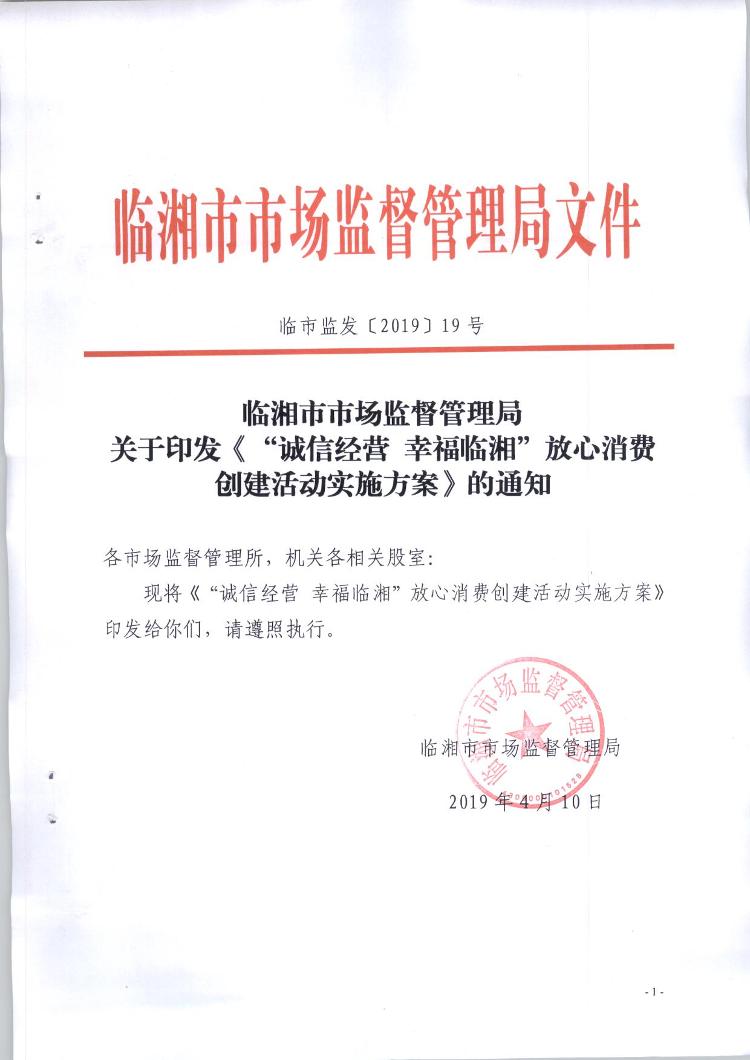 临湘市市场监督管理局关于印发《“诚信经营 幸福临湘”放心消费创建活动实施方案》的通知