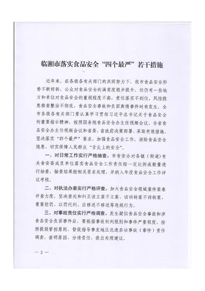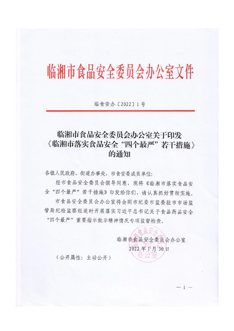 临湘市食品安全委员会办公室关于印发《临湘市落实食品安全“四个最严”若干措施》的通知