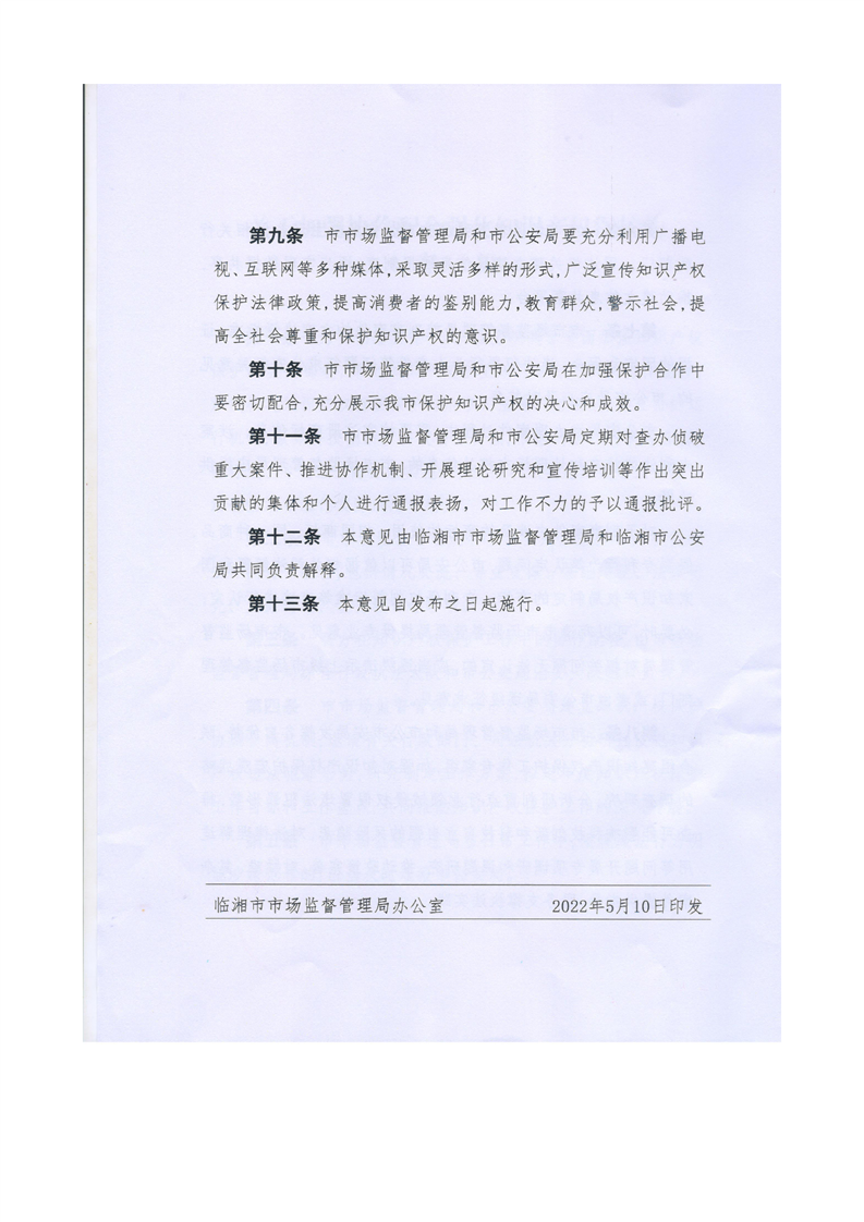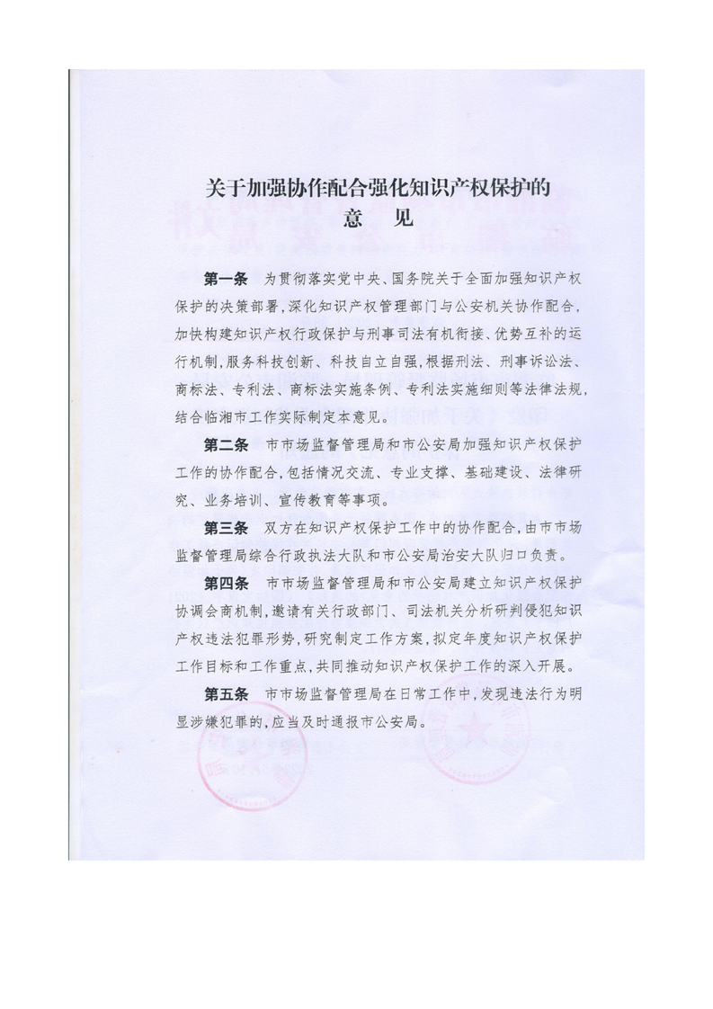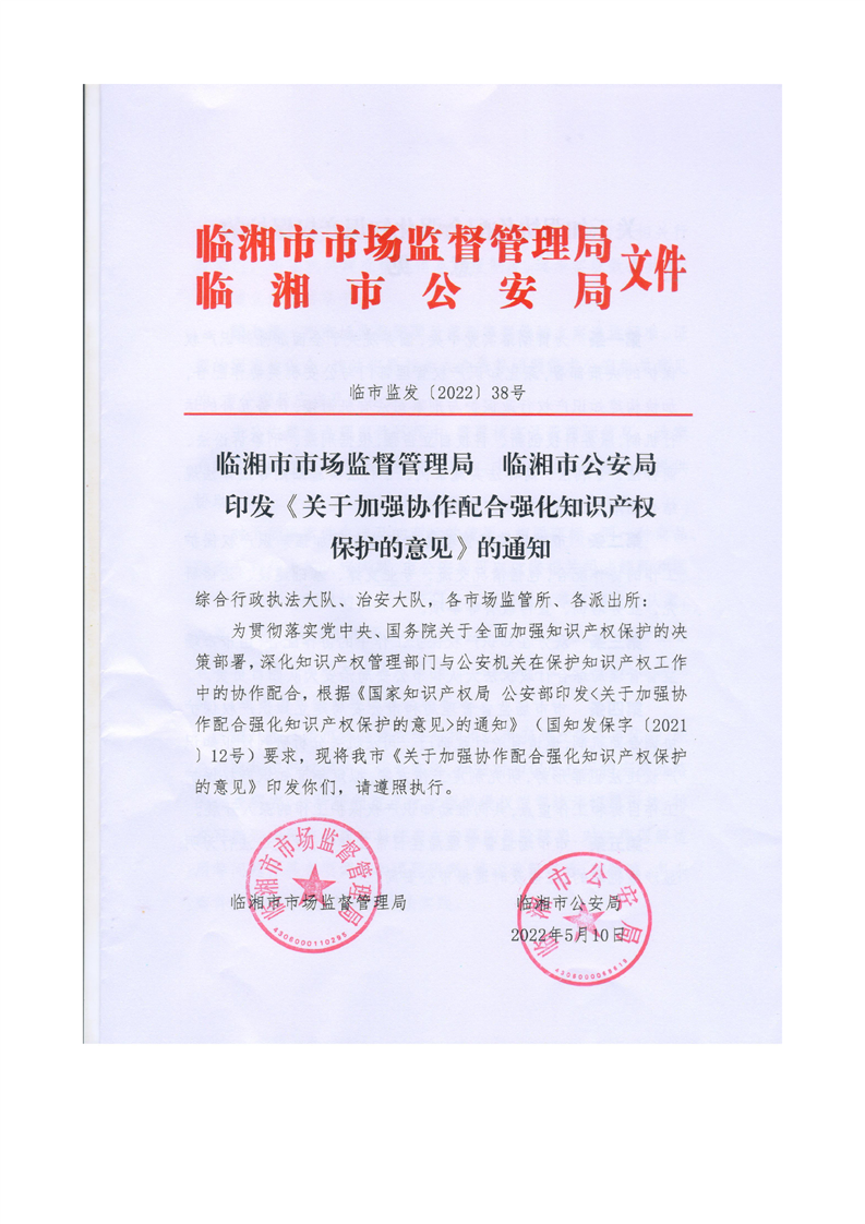 临湘市市场监督管理局 临湘市公安局印发《关于加强协作配合强化知识产权保护的意见》的通知