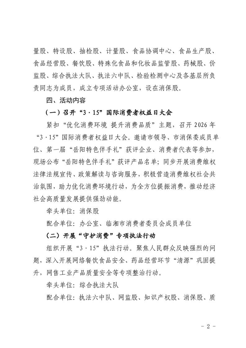 关于印发《2026年“3.15”国际消费者权益日系列活动方案》的通知