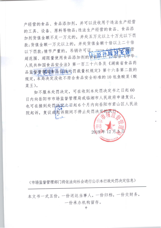 临湘市佰品优购物广场羊楼司店《行政处罚决定书》