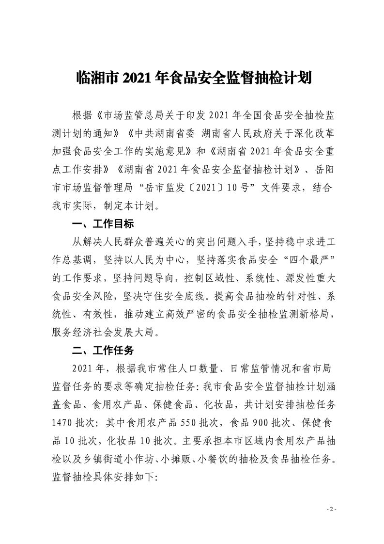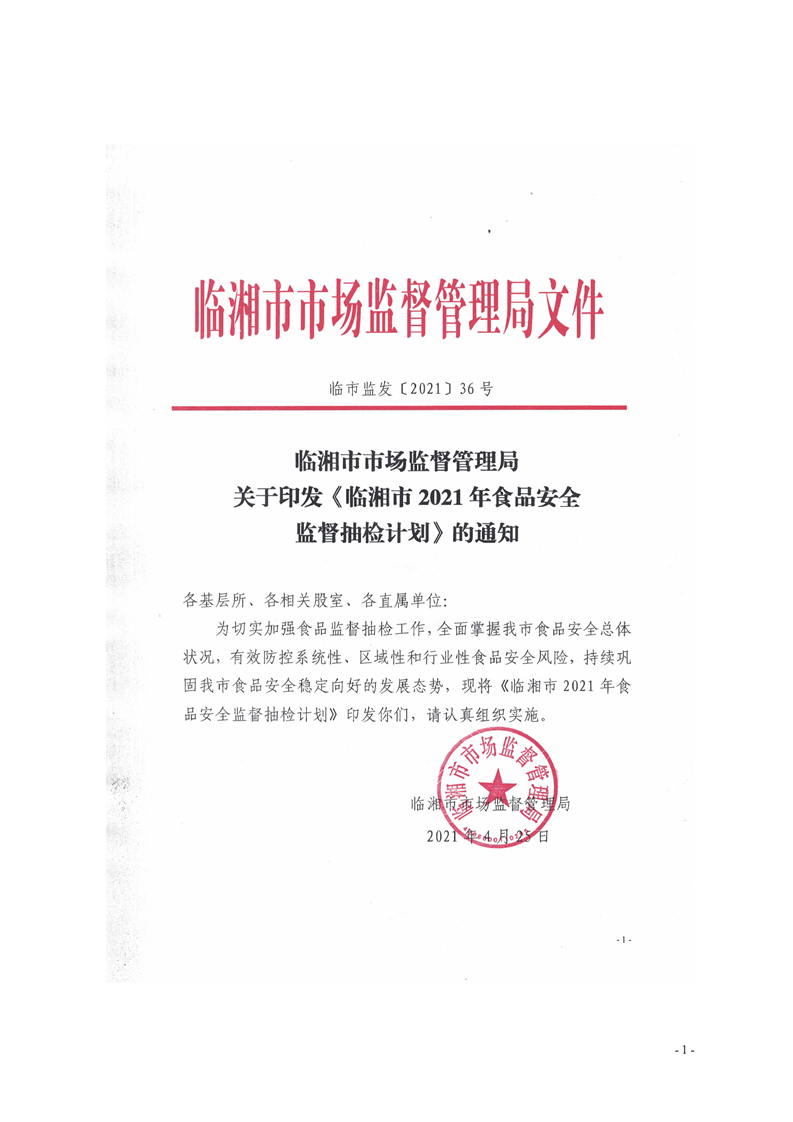 临湘市市场监督管理局关于印发《临湘市2021年食品安全监督抽检计划》的通知